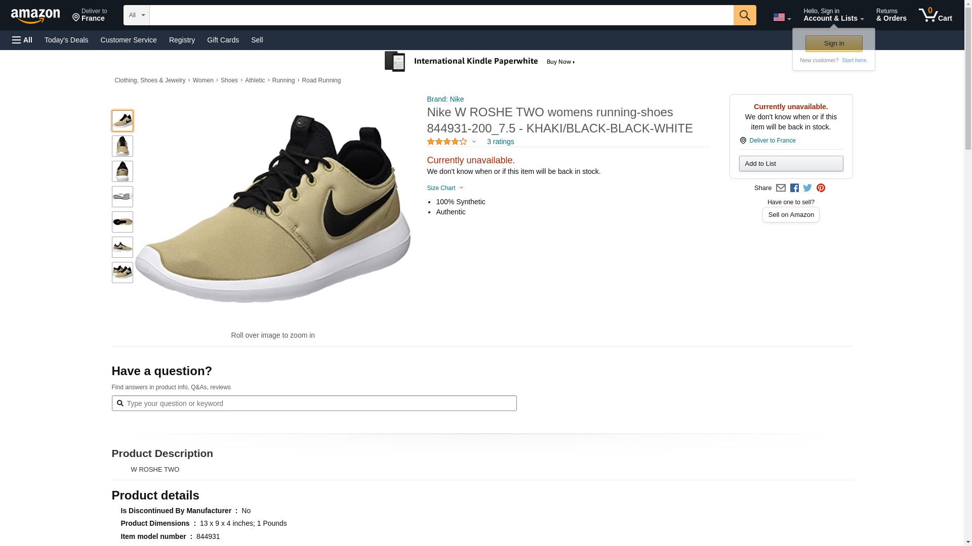 Nike W ROSHE TWO womens running-shoes 844931-200_8.5 - KHAKI/BLACK-BLACK-WHITE