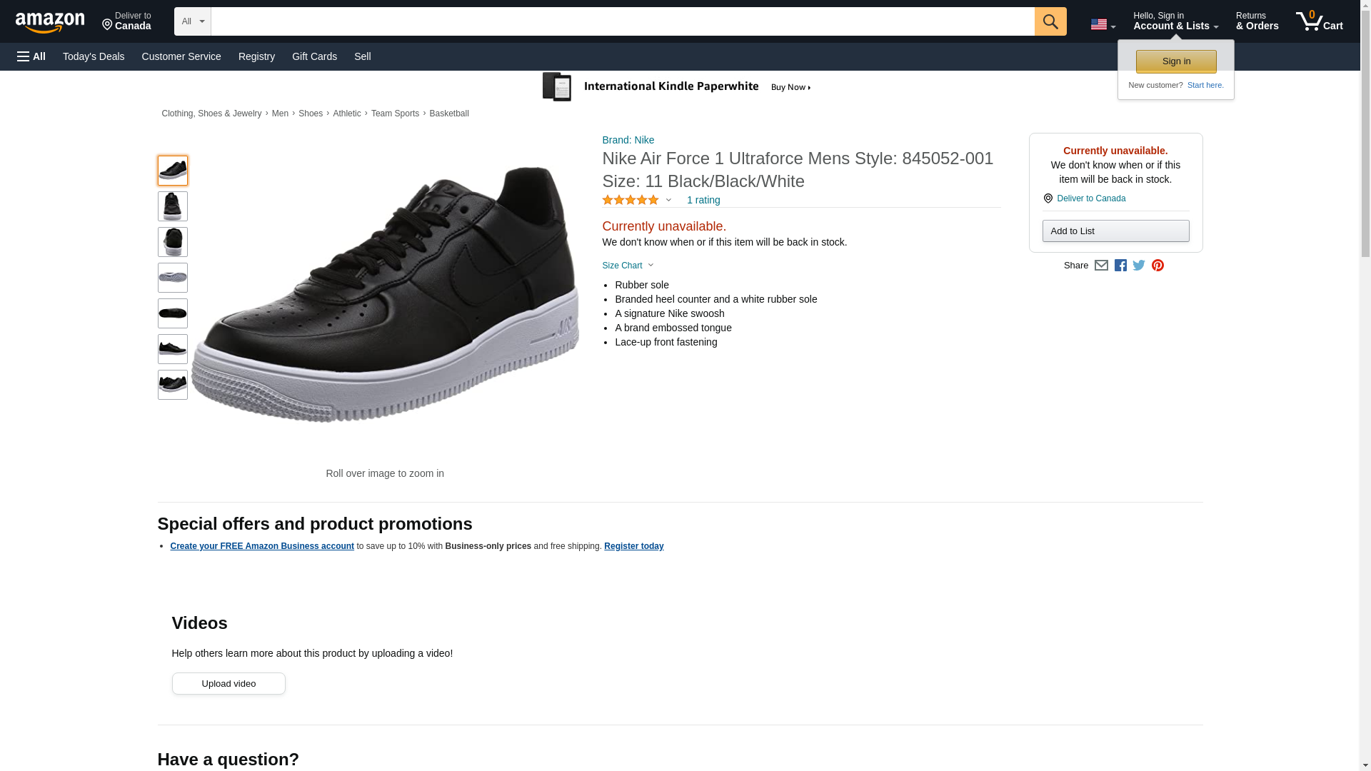 Nike Mens Air Force 1 Ultraforce Leather Black/Black/White Basketball Shoe 11.5 Men US