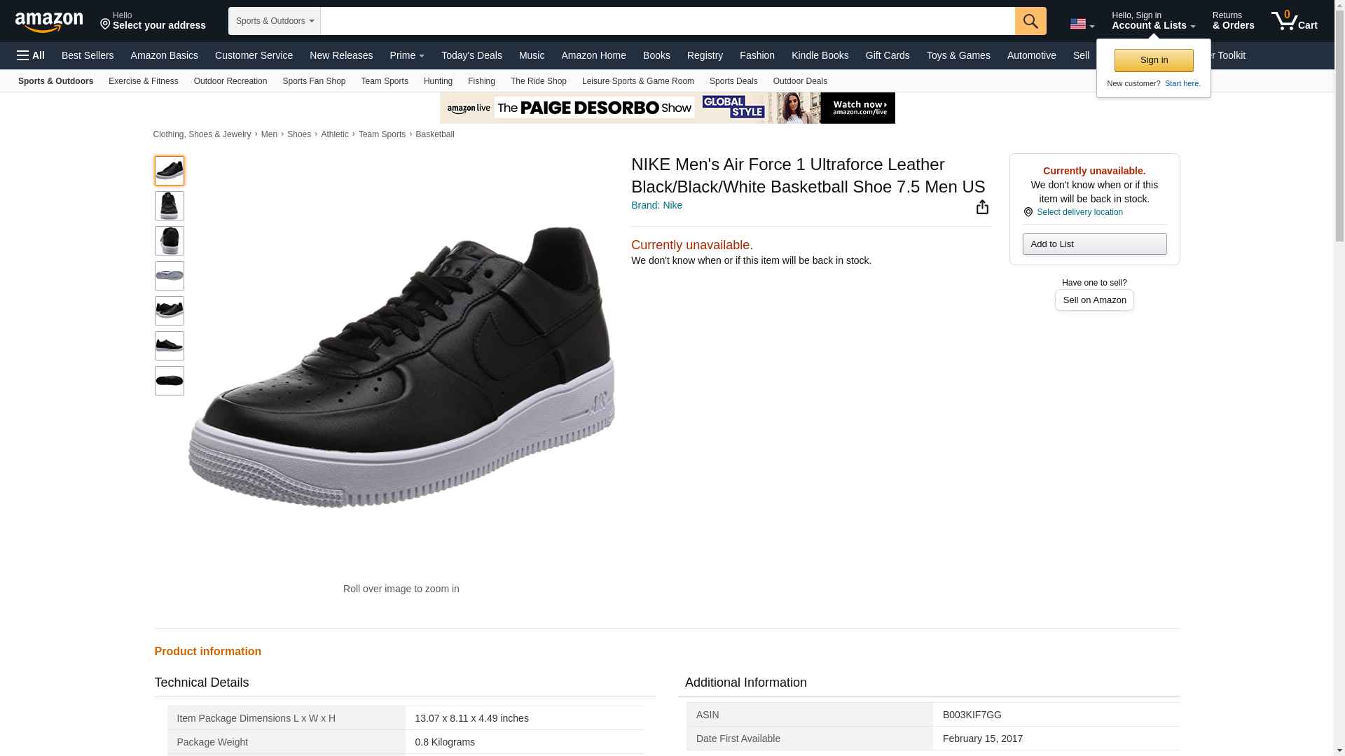 NIKE Men's Air Force 1 Ultraforce Leather Black/Black/White Basketball Shoe 7.5 Men US