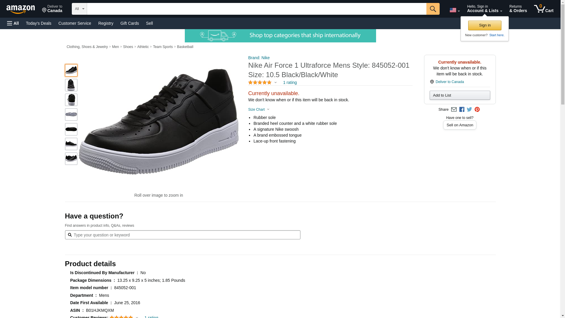 NIKE AIR FORCE 1 ULTRAFORCE LTHR SZ 9 BLACK 845052-001