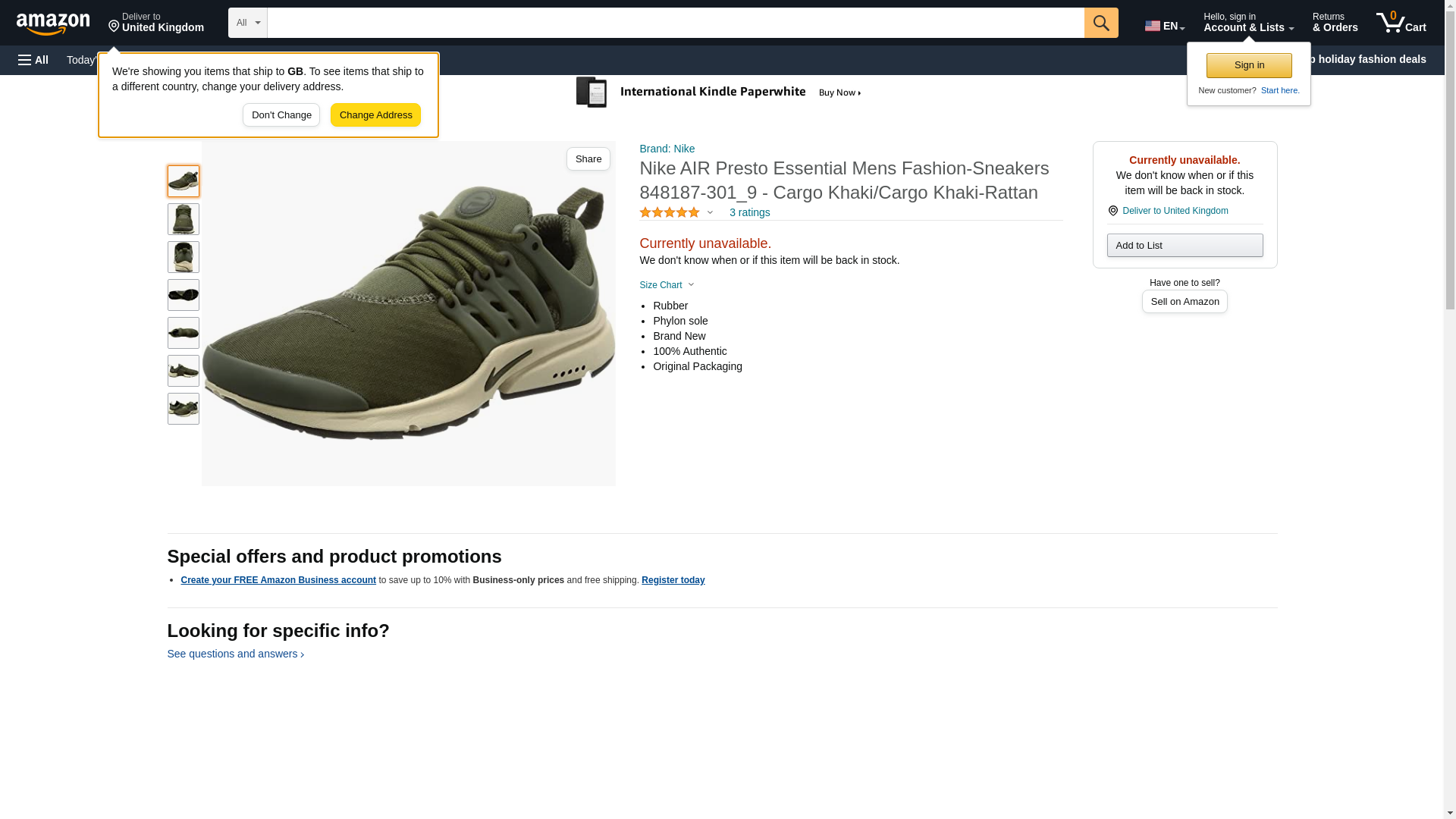 <b>Style Name:</b> Air Presto Essential <br /> <b>Color:</b> Cargo Khaki/Rattan <br /> <b>Condition:</b> New with box <br /> <b>Condition Notes:</b> Brand new with original box. 100% Authentic <br /> <b>Style Code:</b> 848187-301
