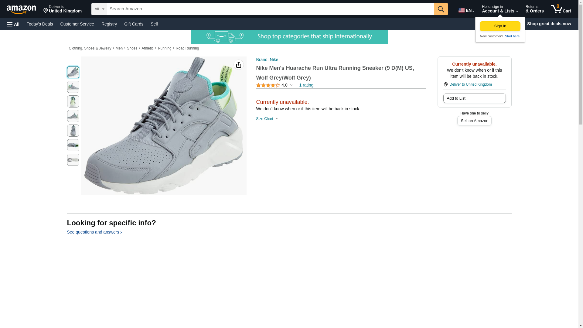 NIKE Men's Air Huarache Run Ultra SE Wolf Grey/Wolf Grey Running Shoe 9 Men US