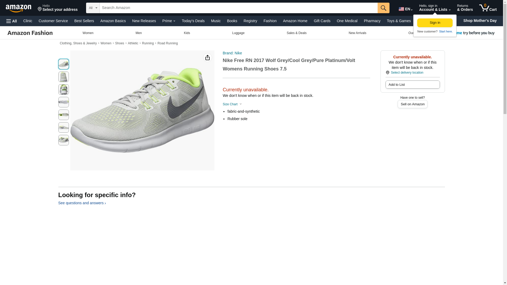 NIKE Free RN 2017 Wolf Grey/Cool Grey/Pure Platinum/Volt Women's Running Shoes Size 7.5