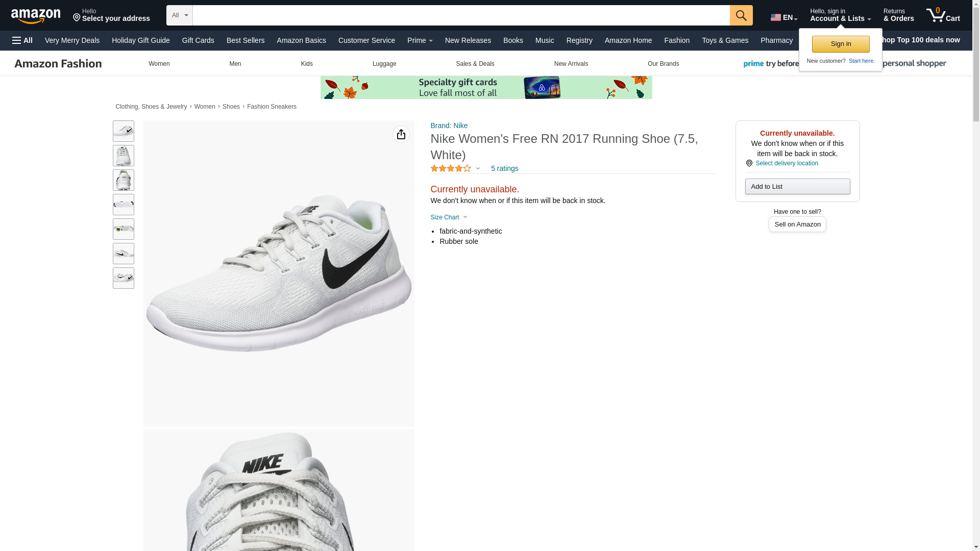 NIKE Free Rn 2017 Womens 880840-101 Size 5.5