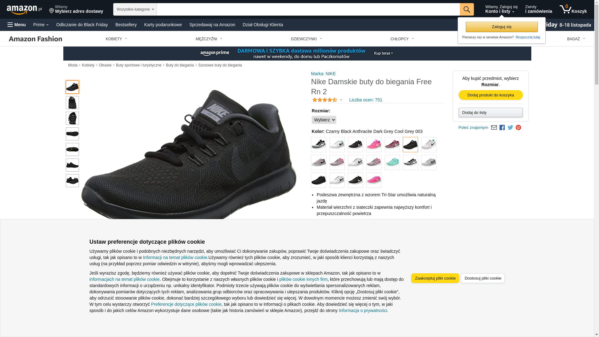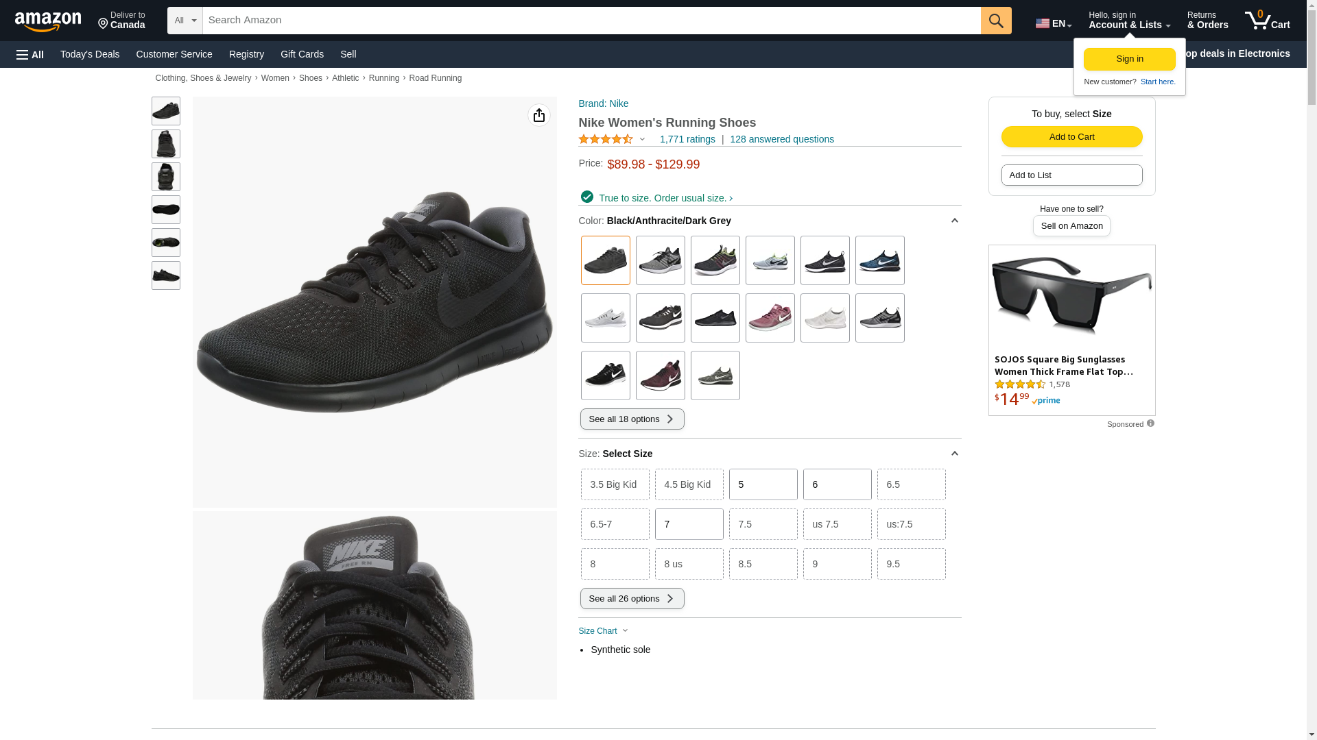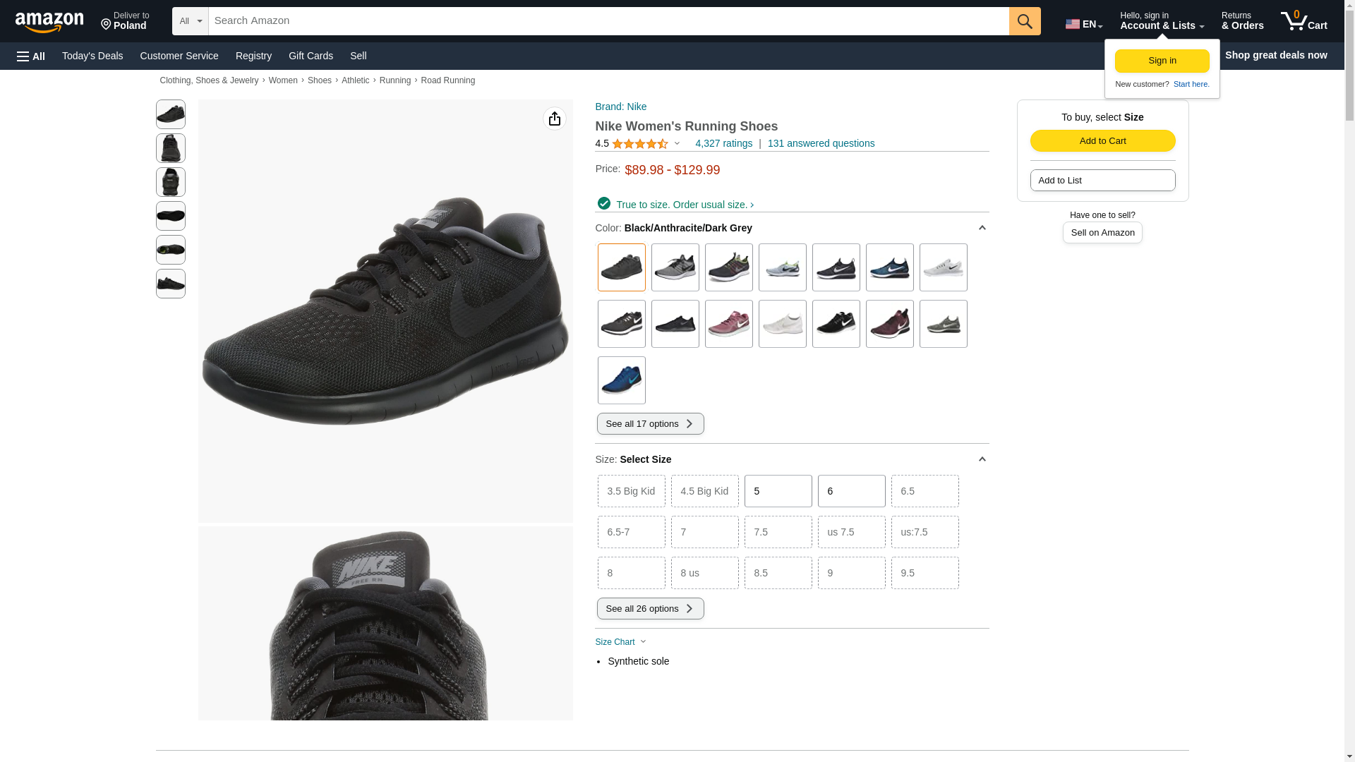 NIKE Women's Free Rn 2017 Black/Anthracite Dark Grey Running Shoe 6.5 Women US