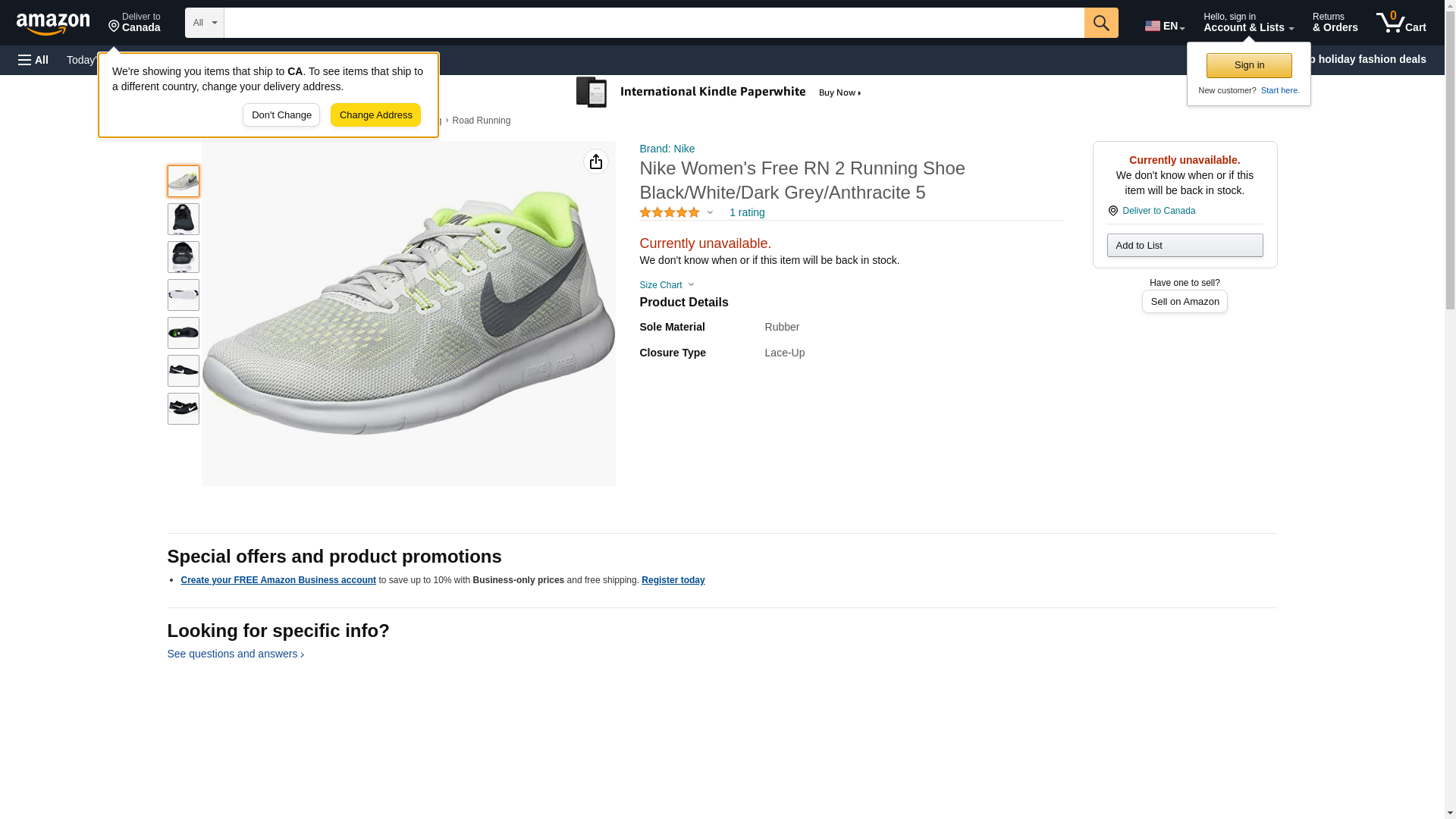 Nike Womens Free RN 2 Running Shoe Black/White/Dark Grey/Anthracite 5.5