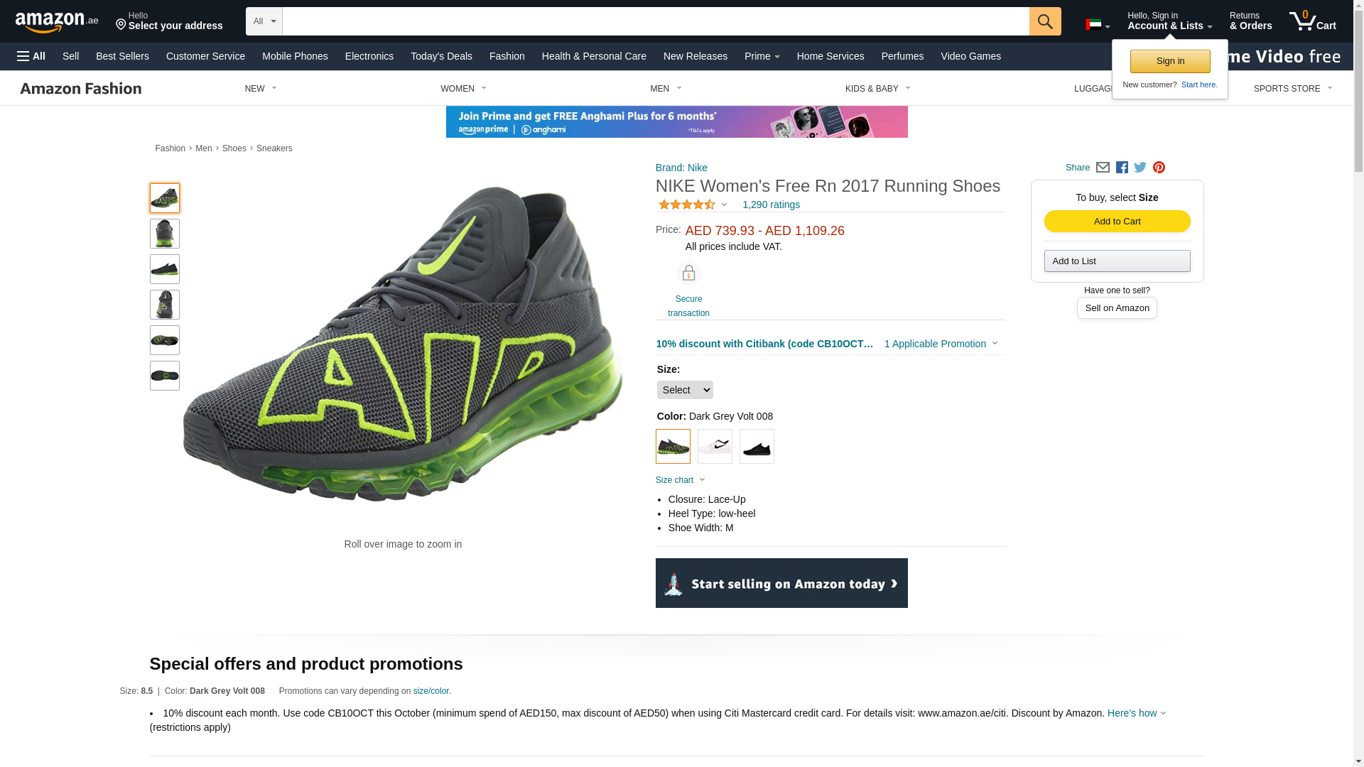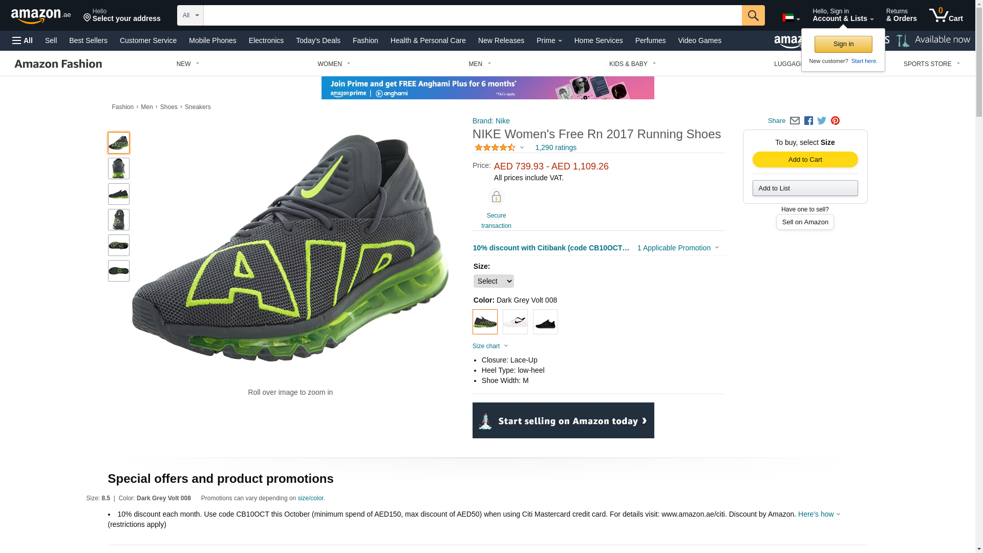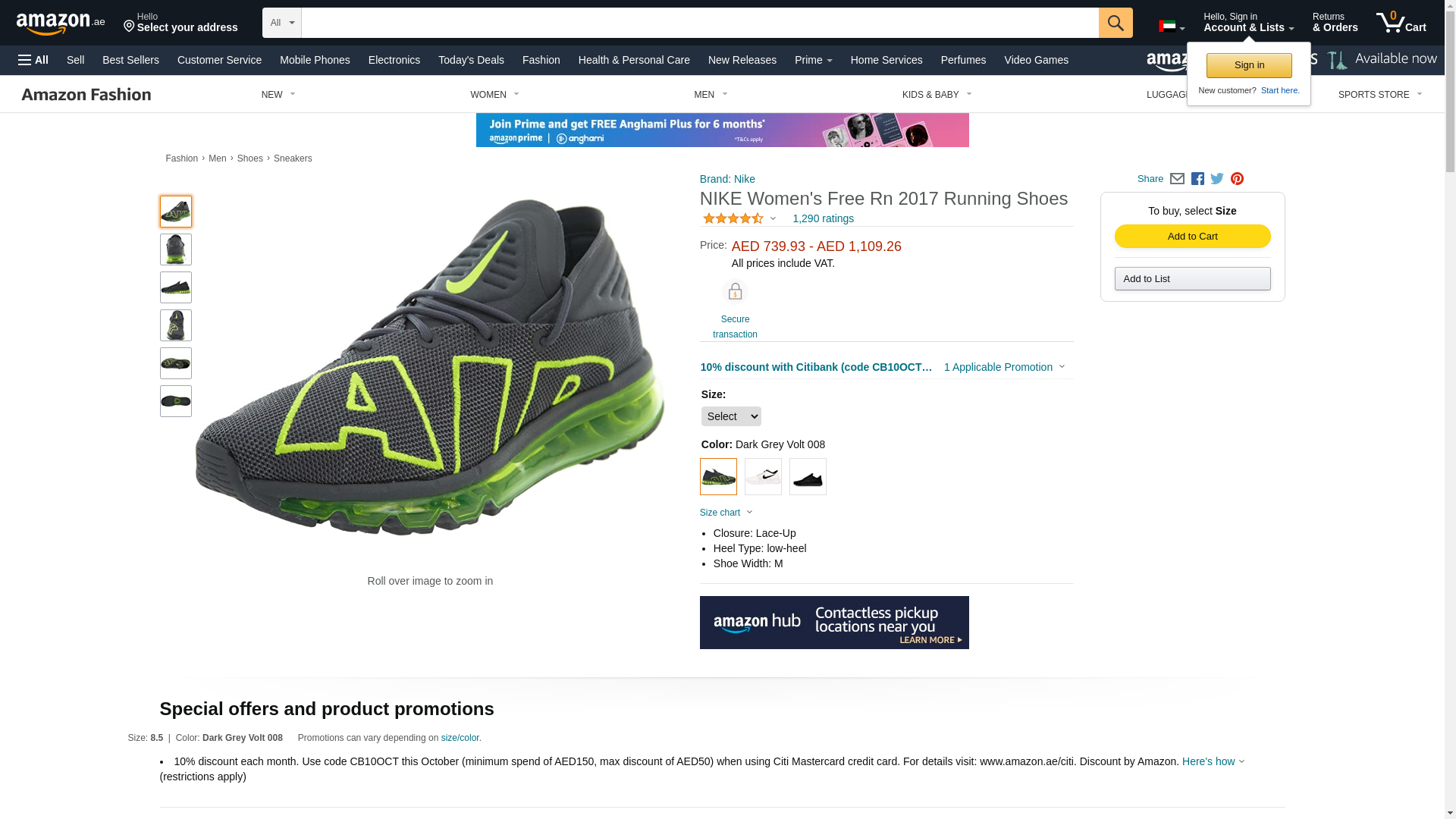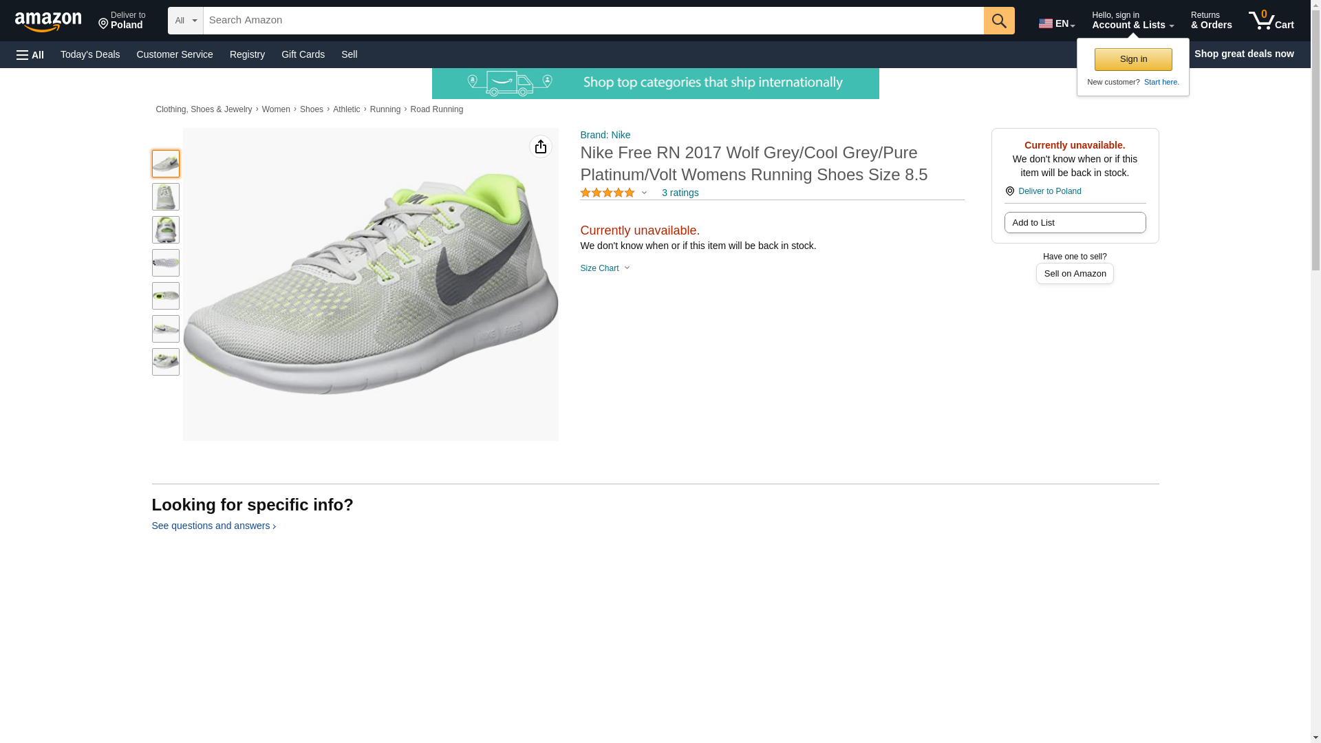 NIKE Free RN 2017 Wolf Grey/Cool Grey/Pure Platinum/Volt Women's Running Shoes Size 8.5