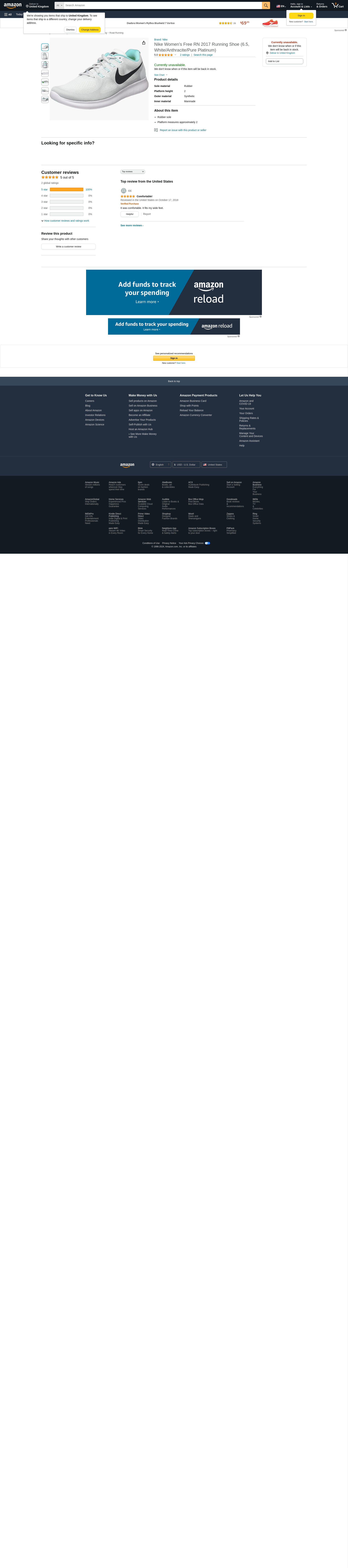 NIKE Womens Free RN 2017 Running Shoe White/Black/Pure Platinum 7.5