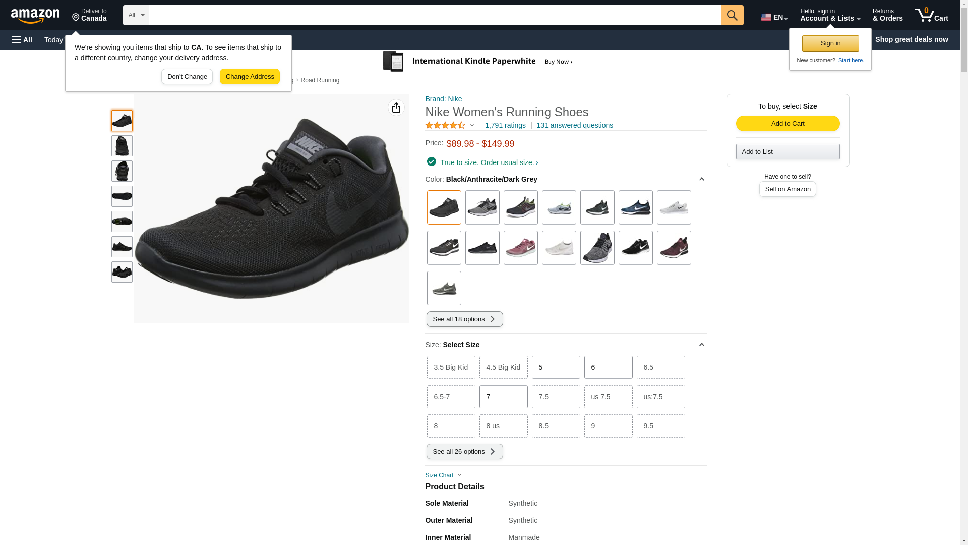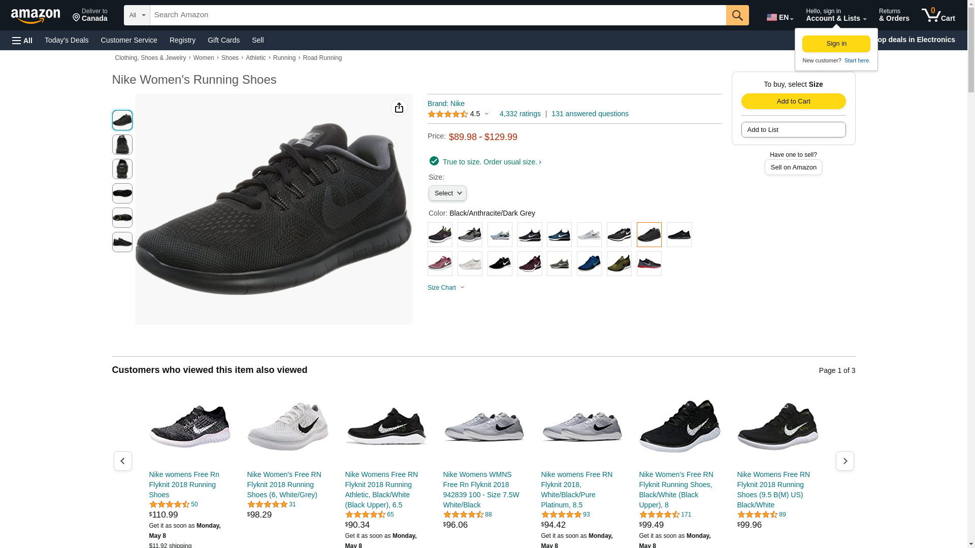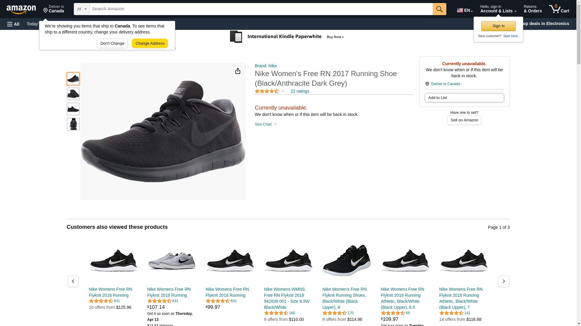 NIKE Women's Free Rn 2017 Black/Anthracite Dark Grey Running Shoe 7.5 Women US