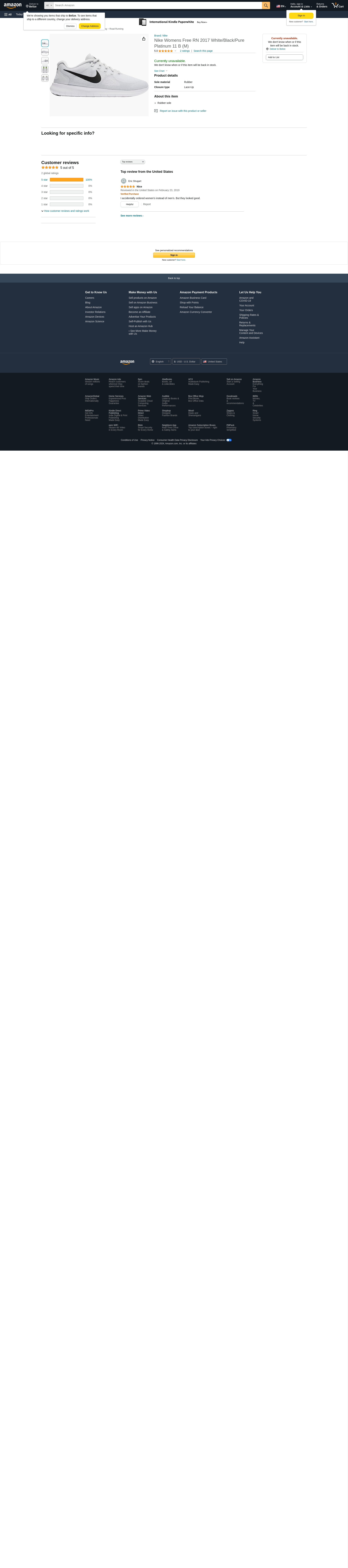 NIKE Free Rn 2017 Womens 880840-101 Size 12
