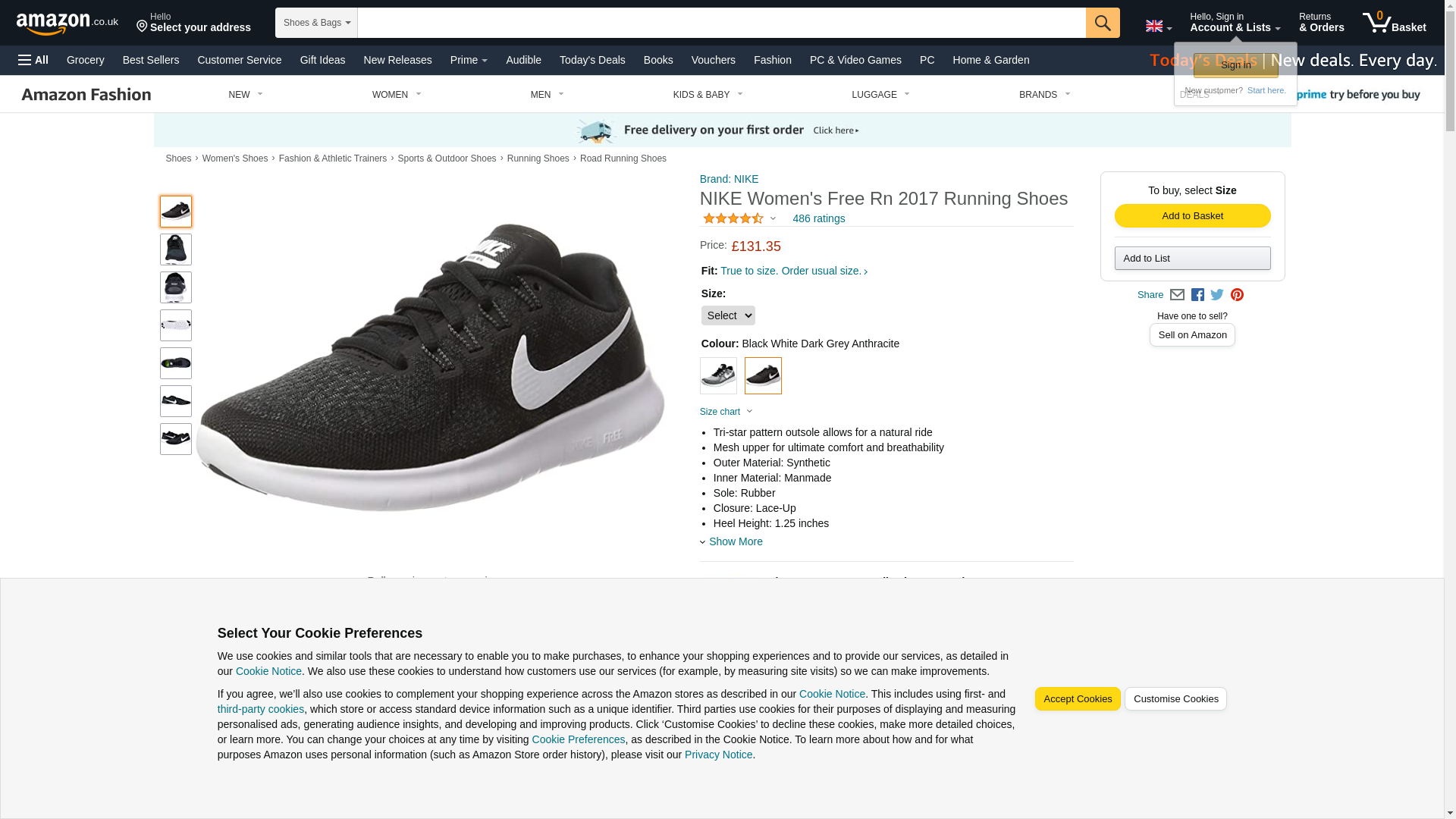 Nike Free RN 2017 Black/White/Dark Grey/Anthracite Womens Running Shoes