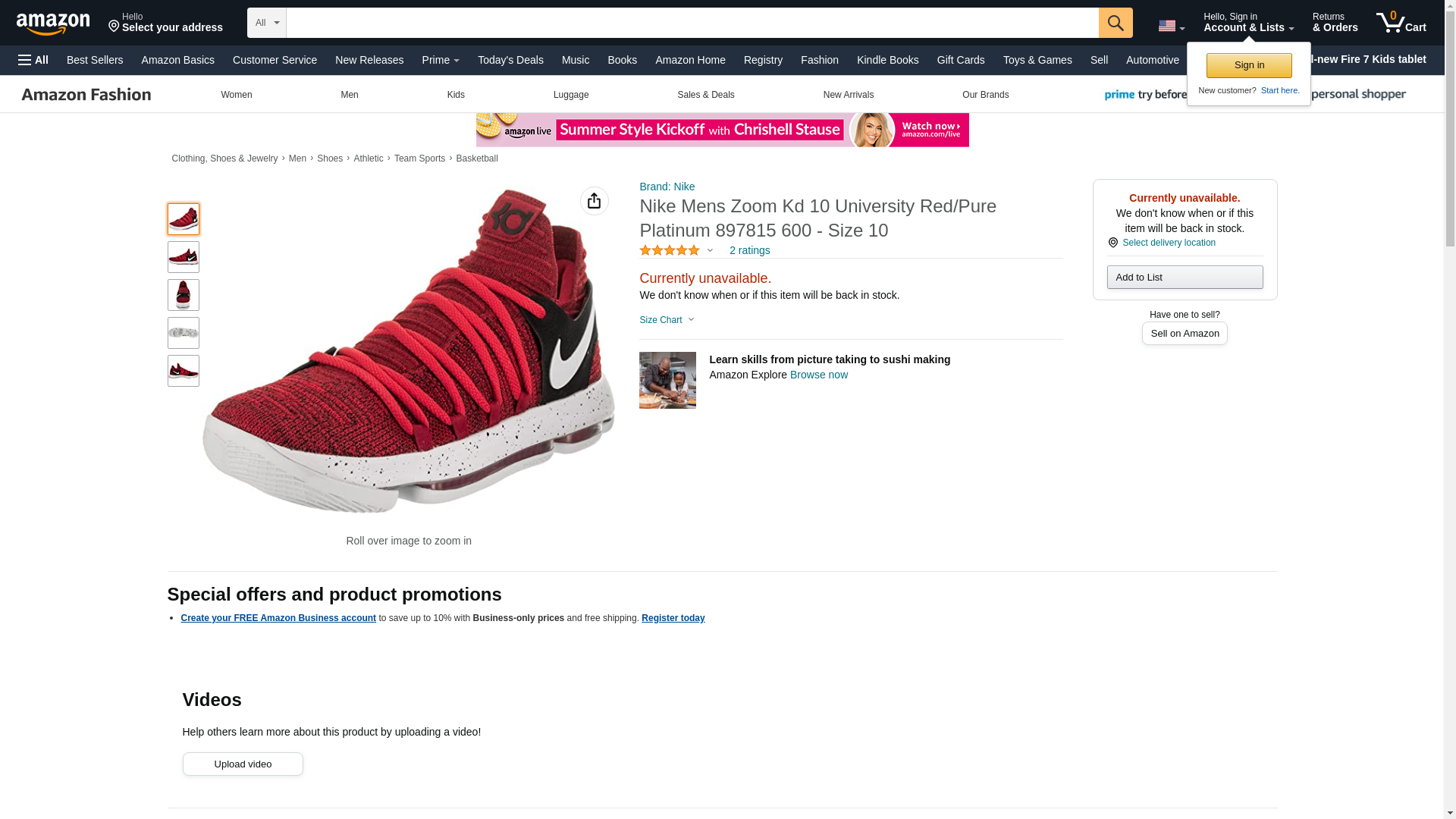 NIKE Men's Zoom KD10, University Red/PurePlatinum, 10 M US