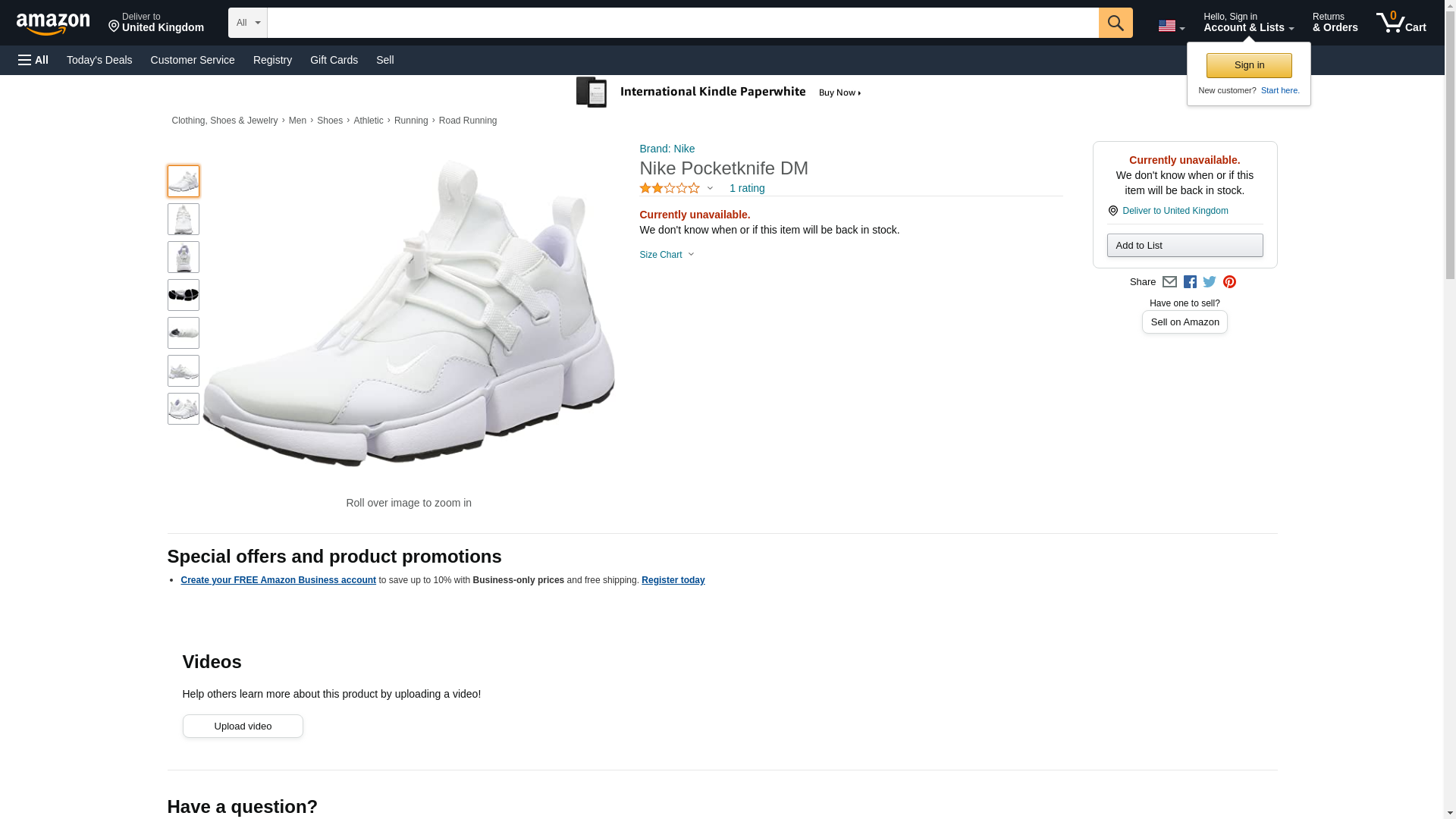 "NIKE Men's Pocketknife DM White/White/White/Black Running Shoe 9 Men US"