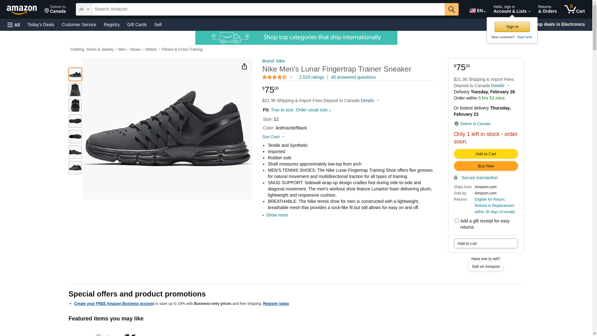 Nike Men's Lunar Fingertrap Trainer Cross, Anthracite/Black, 12.0 Regular US