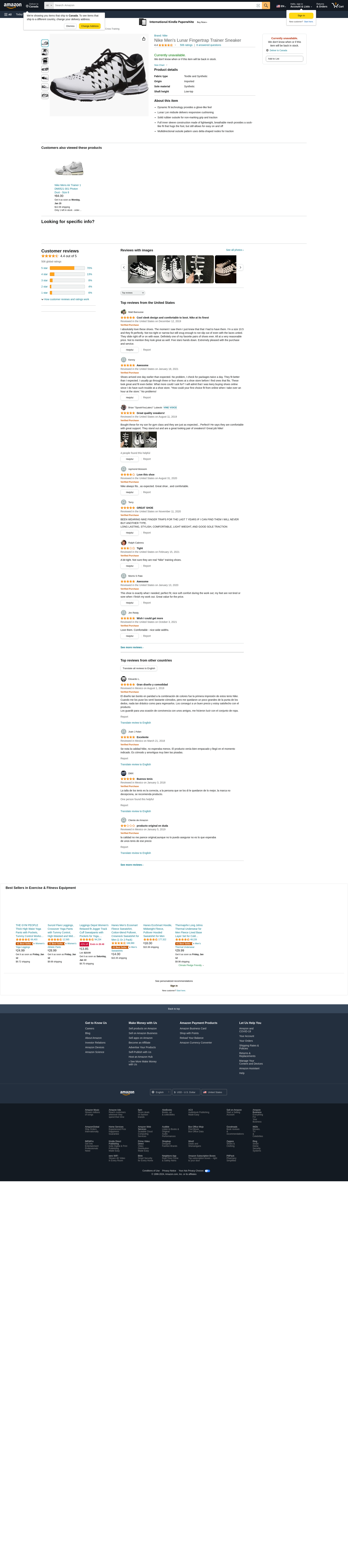 Nike Mens Lunar Fingertrap Training Shoe White/Black Size 14 M US