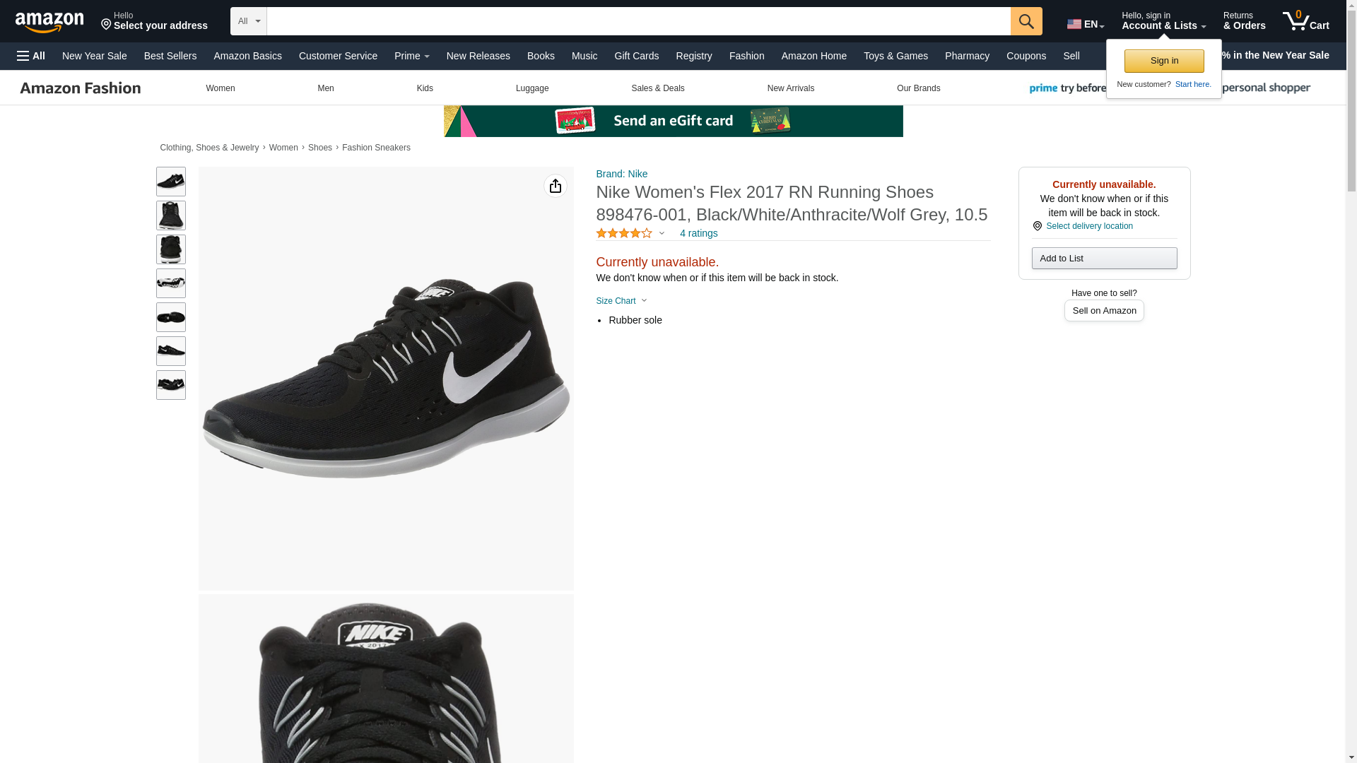 Nike Womens Flex 2017 RN Running Shoe Black/White/Anthracite/Wolf Grey 5.5 B(M) US