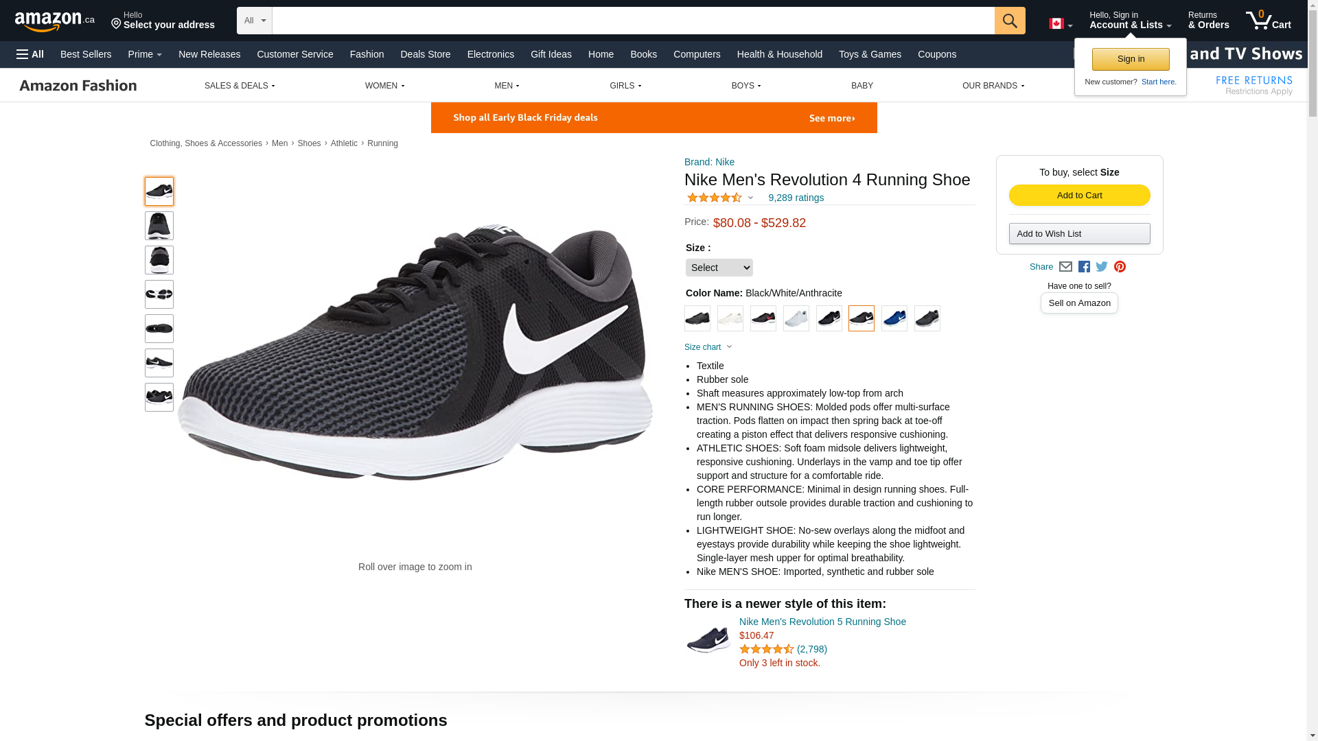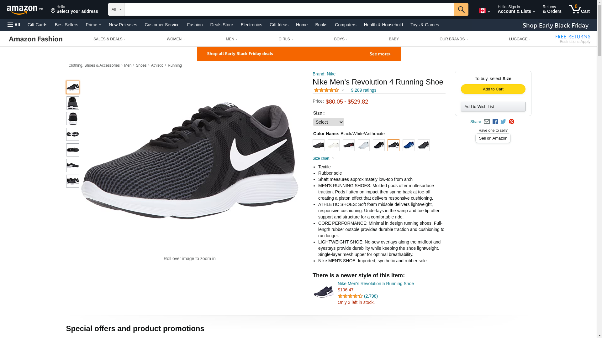 Nike Men's Revolution 4 Running Shoe, Black/White-Anthracite, 6.5 Regular US