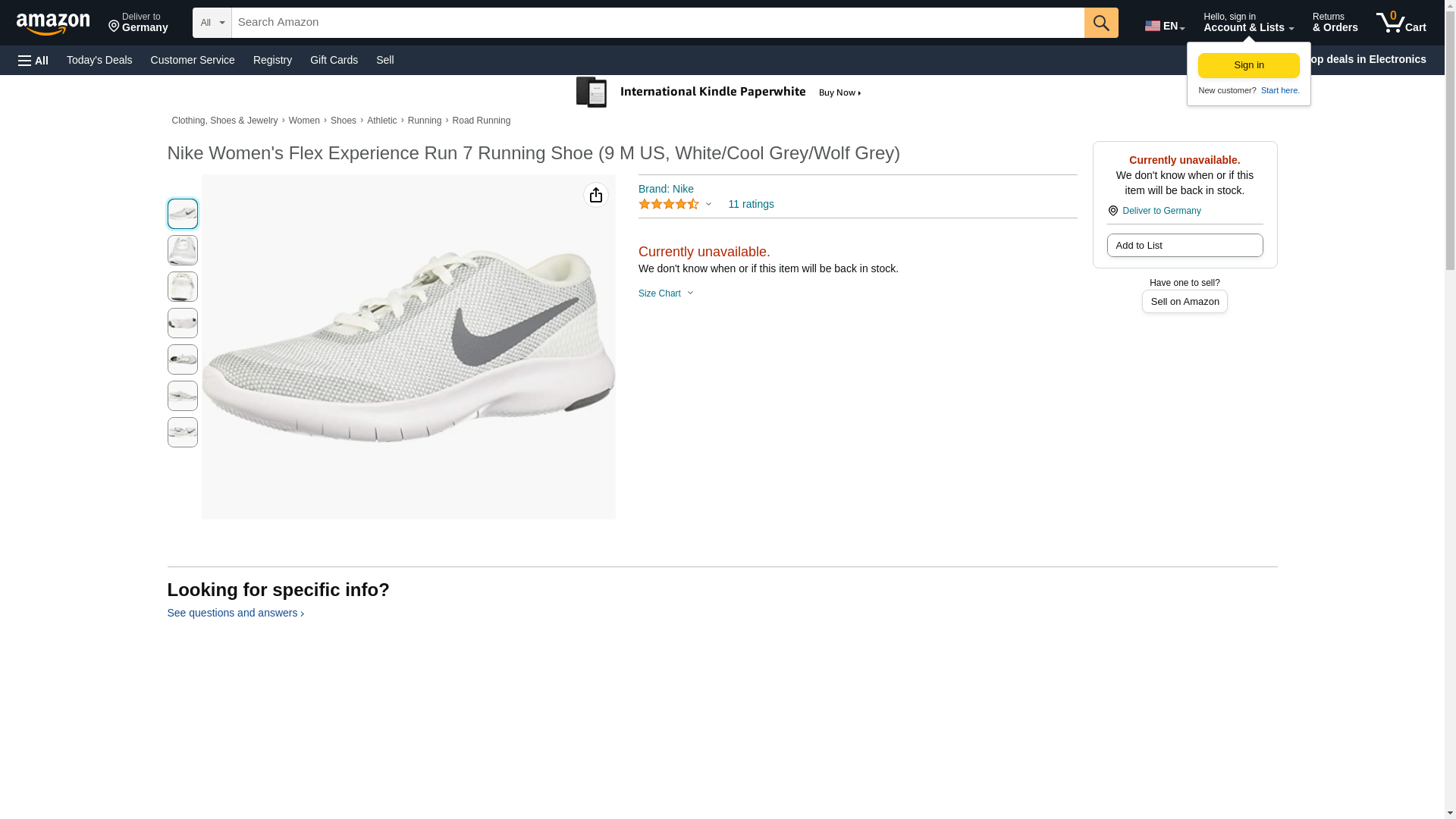 Nike Womens WMNS Flex Experience RN 7 Wolf Grey White Cool Grey Size 11