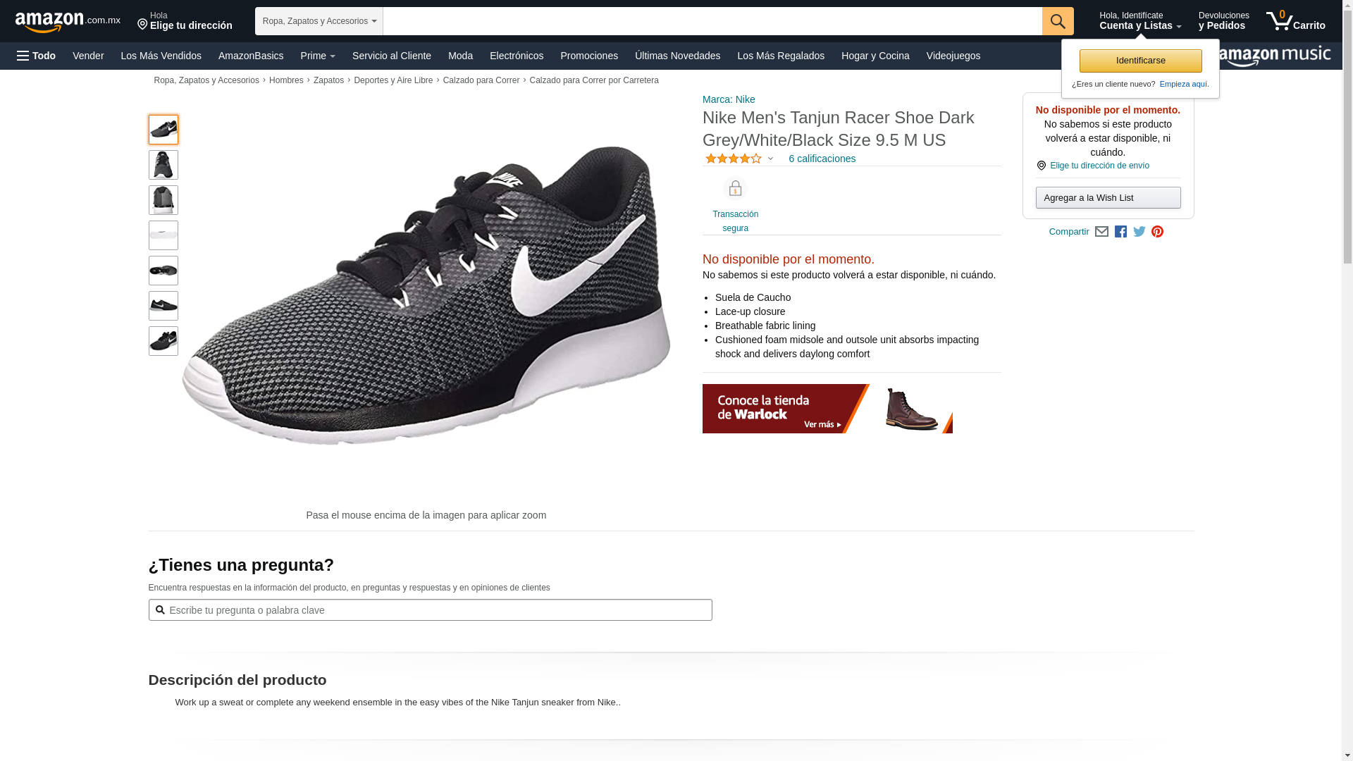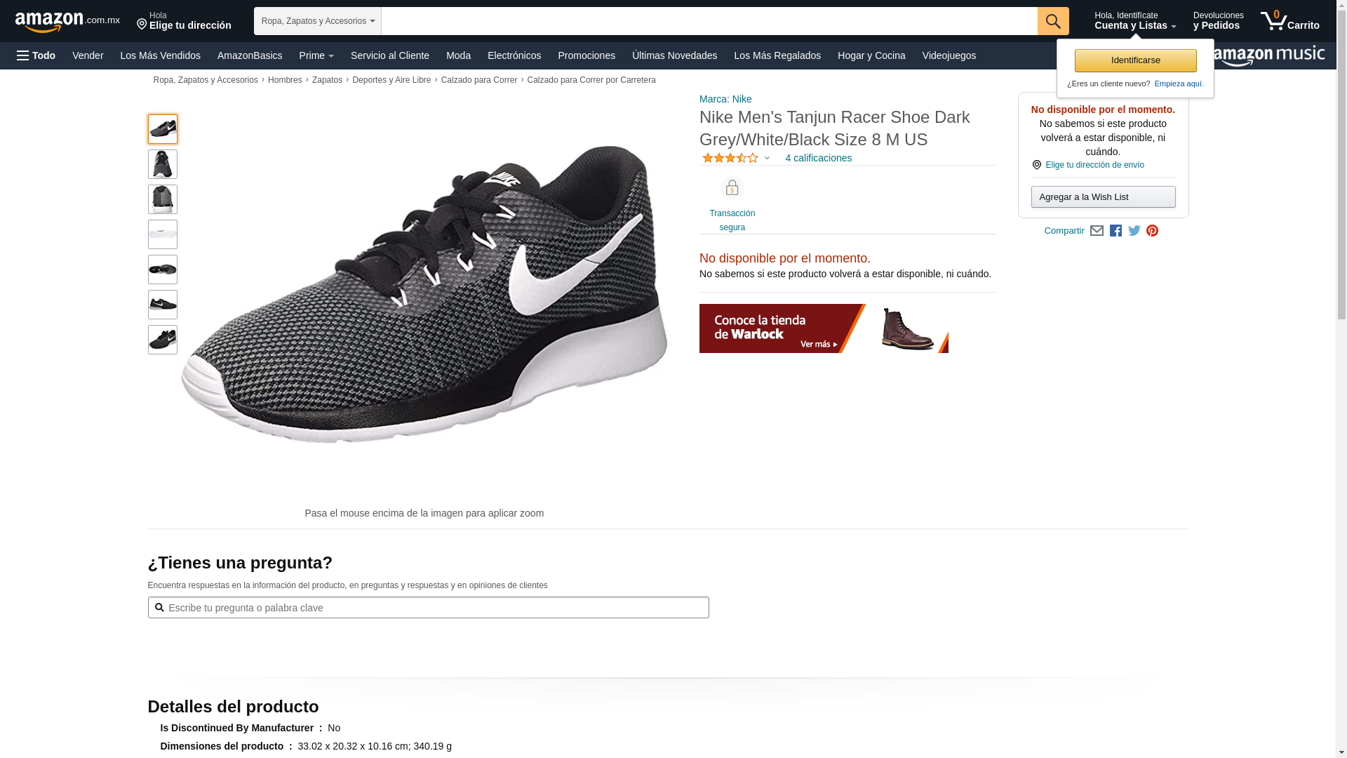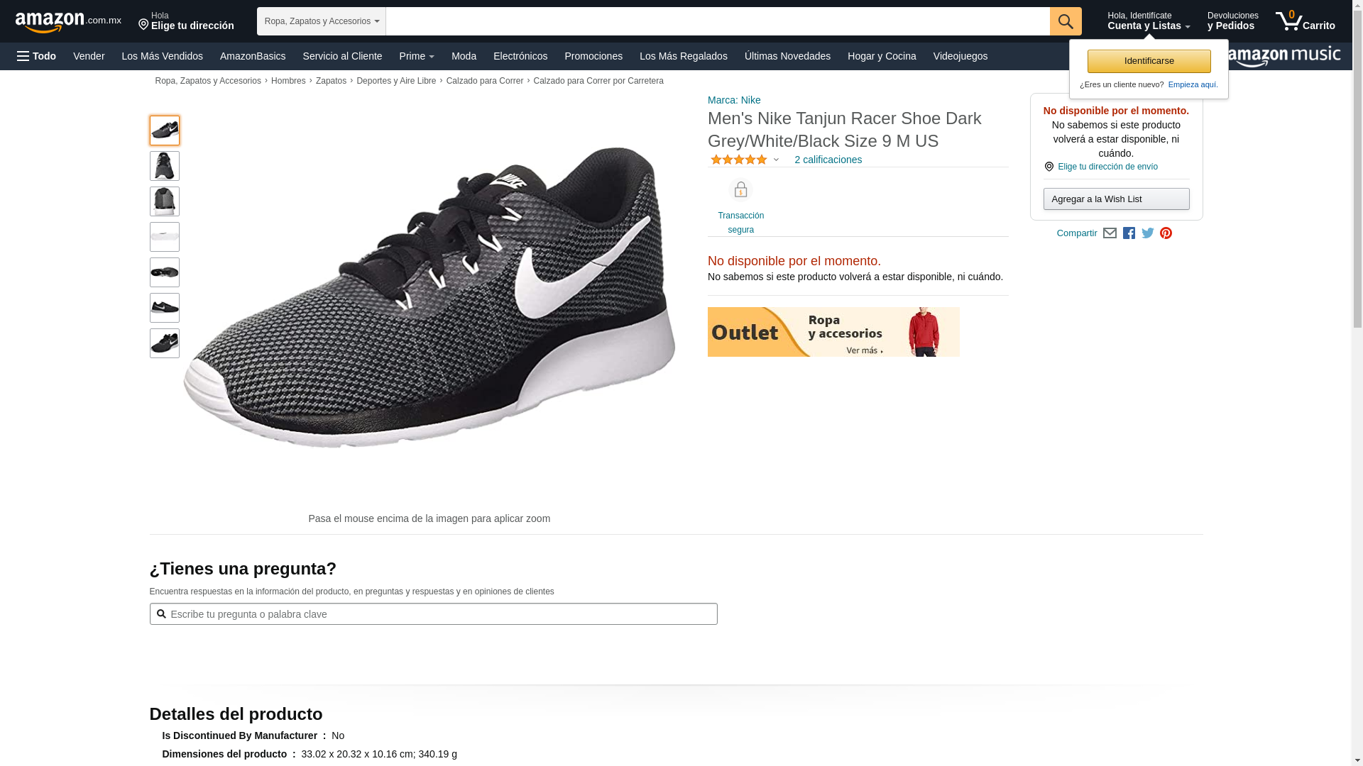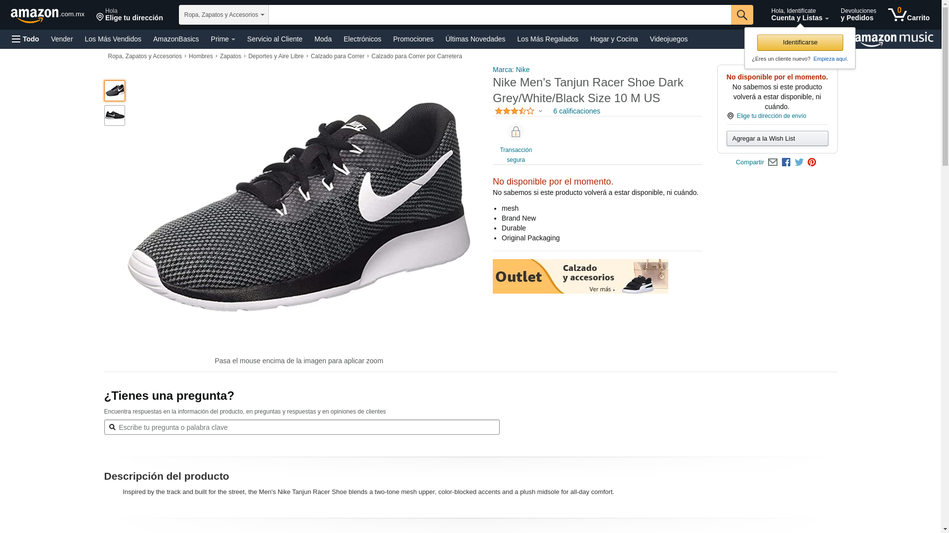 NIKE Men's Tanjun Racer Shoe Dark Grey/White/Black Size 7.5 M US