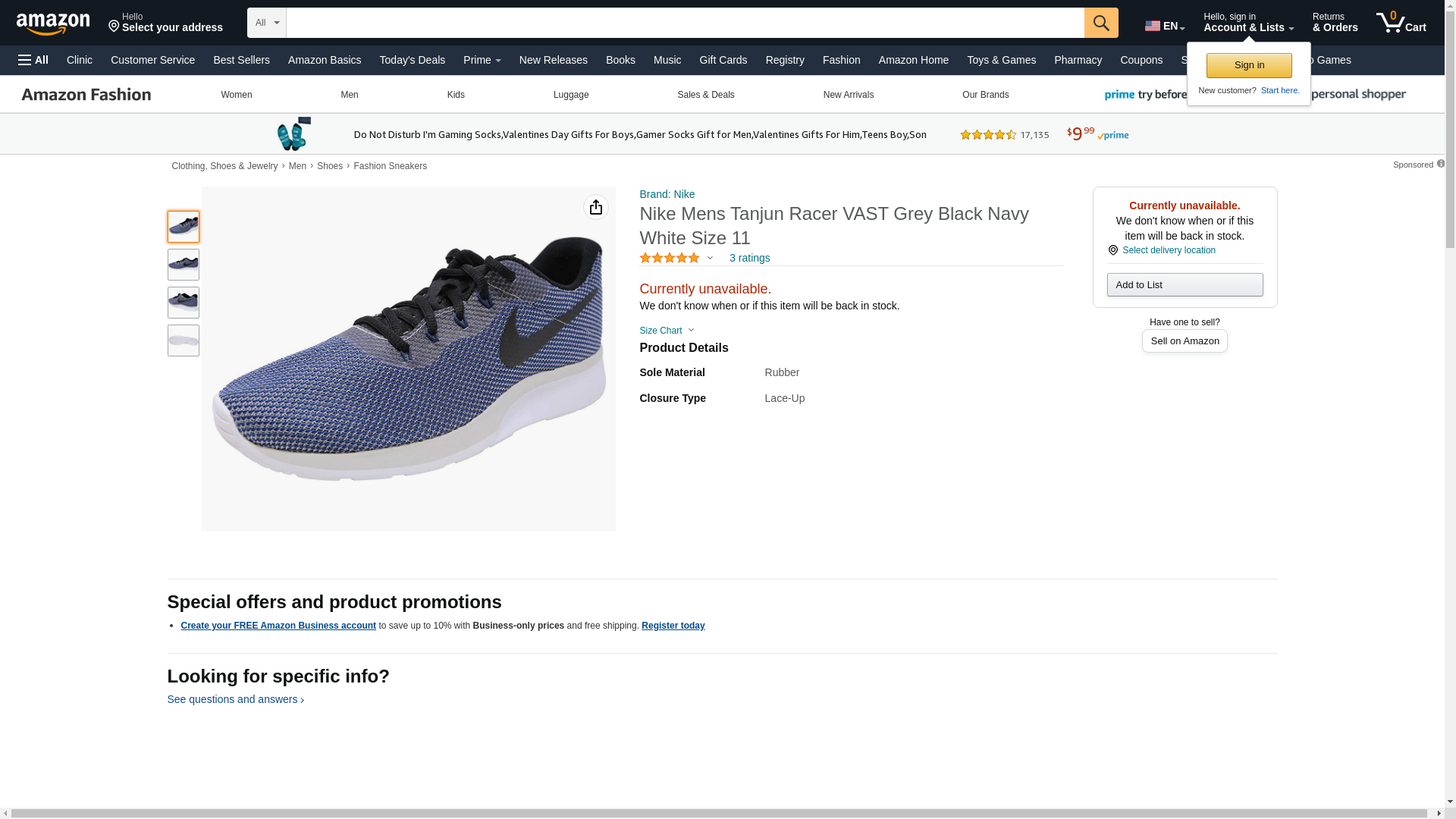 Nike Mens Tanjun Racer VAST Grey Black Navy White Size 7.5