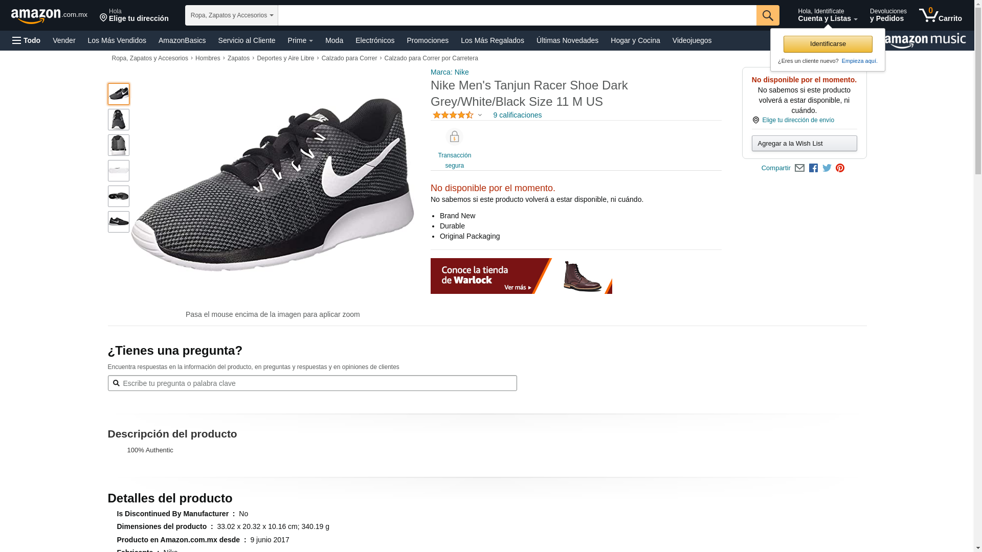 Nike Mens Tanjun Racer Gunsmoke/Black-Atmosphere Grey 921669-006 (11.5 D(M) US)