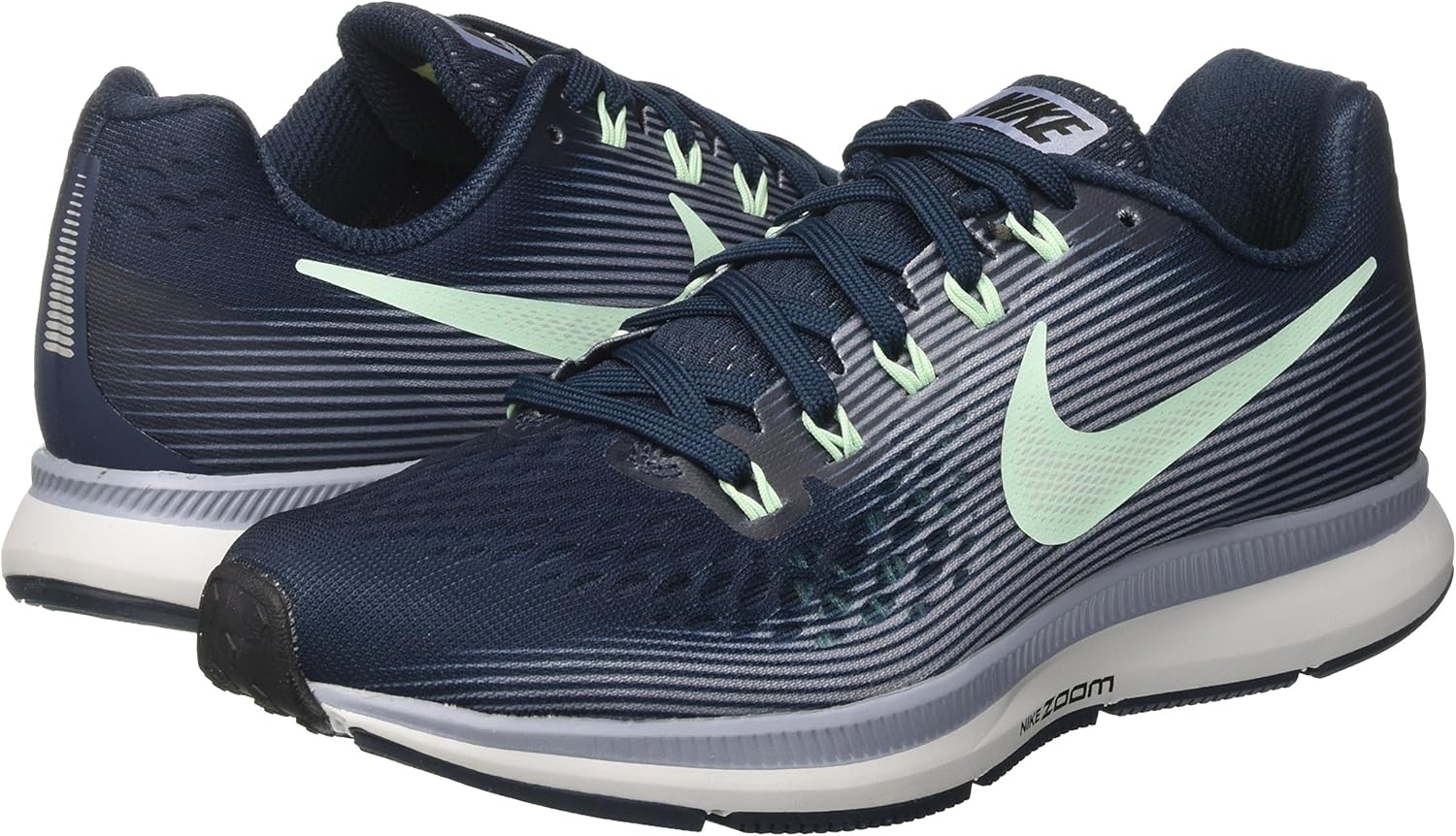 LIGHTWEIGHT AND FAST Built for beginners and experienced runners, the Nike Air Zoom Pegasus 34 Women's Running Shoe features an updated, lighter Flymesh material that helps reduce heat buildup when you run. The tried and true cushioning and support runners have come to love remains. Breathable Comfort The one-piece Flymesh fabric is lightweight and breathable to help keep your feet from overheating. This version of Flymesh is updated with lighter materials while still providing excellent support around your foot. Secure Fit Flywire, incredibly strong cables, works together with the laces to wrap the arch of your foot for snug support, helping to keep the shoe in place as you move. A firm heel cups your heel for added stability. Responsive Feel A foam cushion works with Zoom Air units in the forefoot and heel to give you a push as you run. More Details Rubber strip along the bottom of the shoe helps you transition from heel to toe, while small cuts offer a flexible feel Raised rubber sections on bottom of the shoe provide traction Offset: 10mm