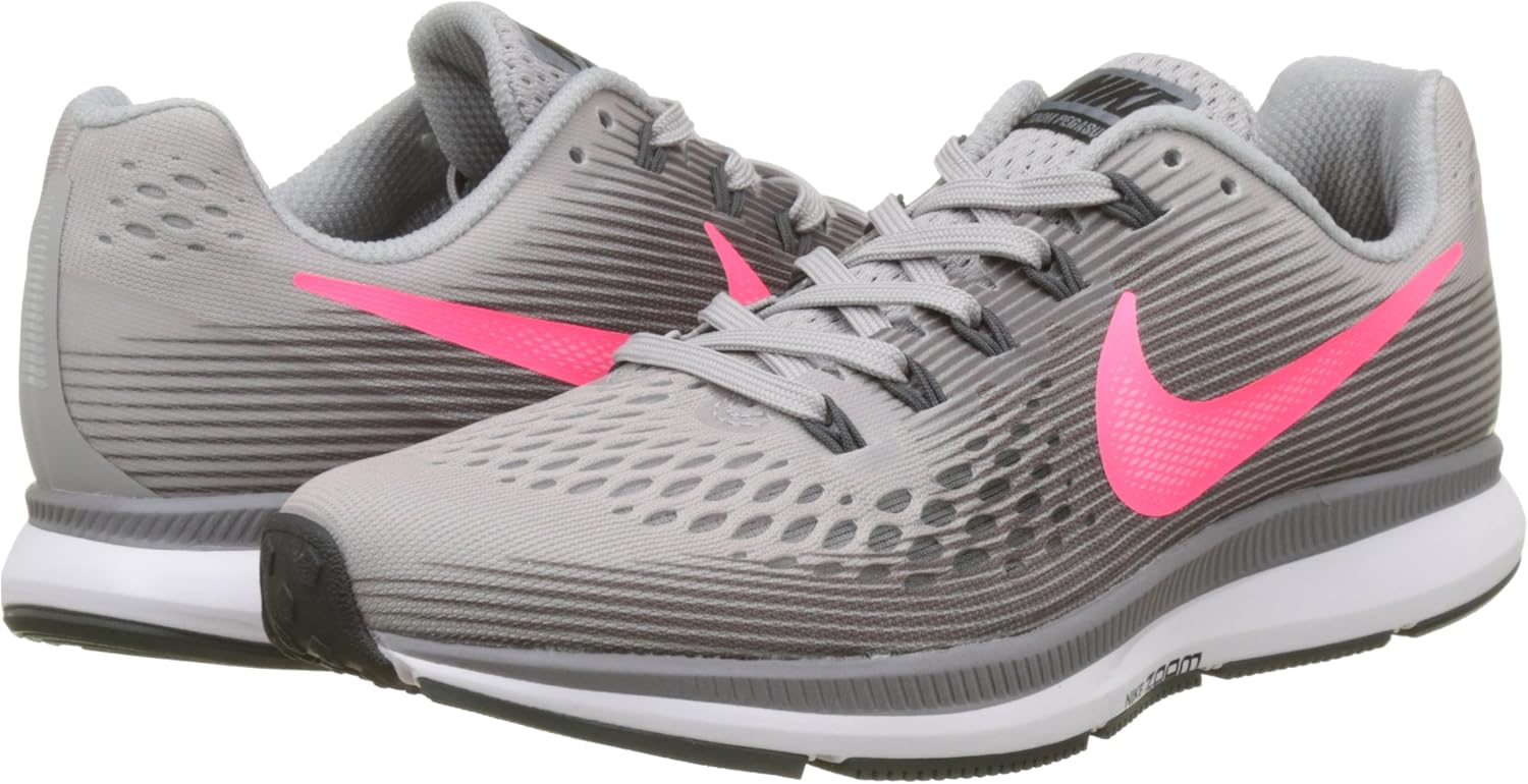 LIGHTWEIGHT AND FAST Built for beginners and experienced runners, the Nike Air Zoom Pegasus 34 Women's Running Shoe features an updated, lighter Flymesh material that helps reduce heat buildup when you run. The tried and true cushioning and support runners have come to love remains. Breathable Comfort The one-piece Flymesh fabric is lightweight and breathable to help keep your feet from overheating. This version of Flymesh is updated with lighter materials while still providing excellent support around your foot. Secure Fit Flywire, incredibly strong cables, works together with the laces to wrap the arch of your foot for snug support, helping to keep the shoe in place as you move. A firm heel cups your heel for added stability. Responsive Feel A foam cushion works with Zoom Air units in the forefoot and heel to give you a push as you run. More Details Rubber strip along the bottom of the shoe helps you transition from heel to toe, while small cuts offer a flexible feel Raised rubber sections on bottom of the shoe provide traction Offset: 10mm
