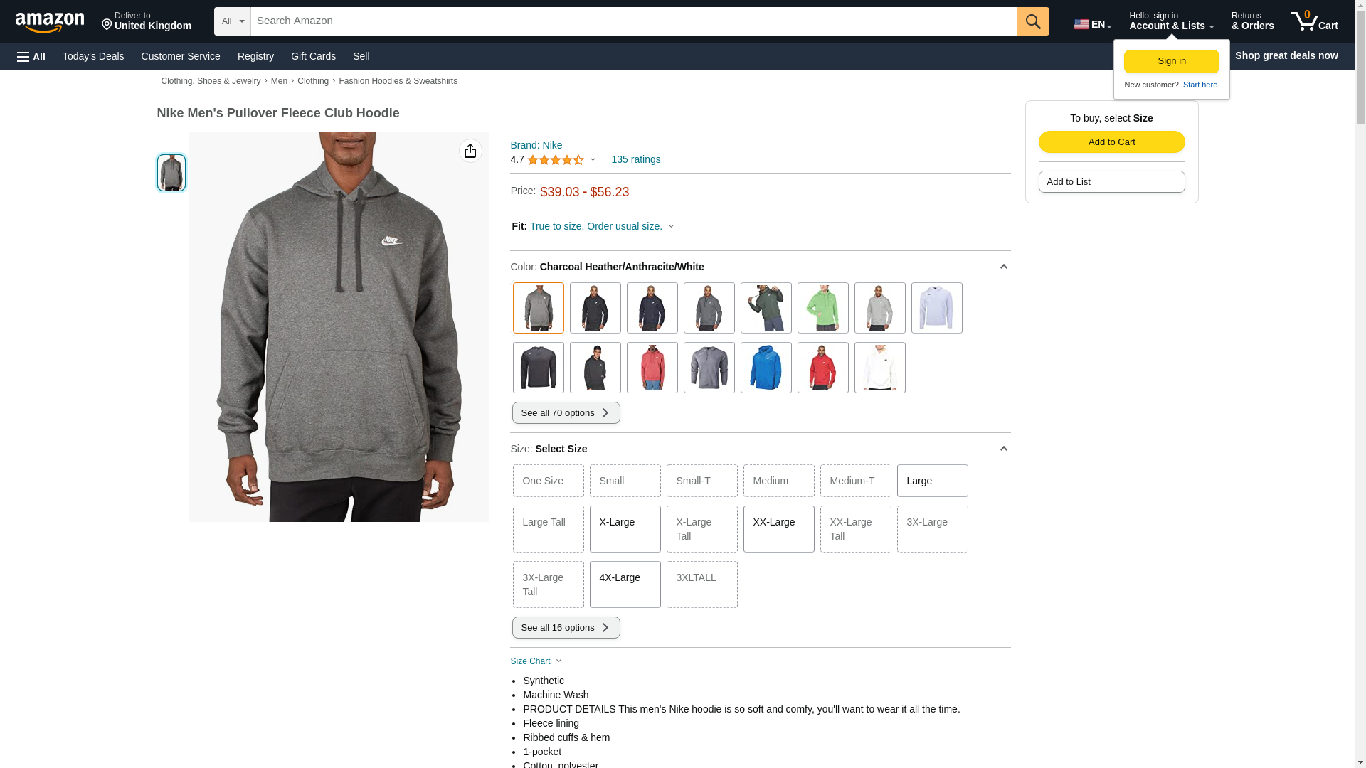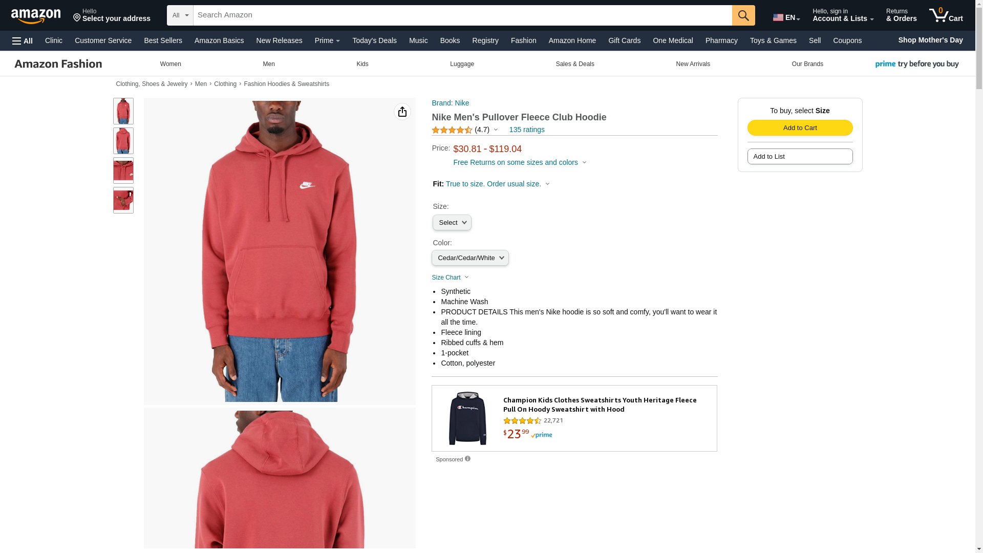 100% Cotton Imported Lace Up closure Machine Wash NIKE HOODIE: Nike hoodies for men combine classic style with the soft comfort of fleece for an elevated look that you can wear everyday. SOFT COMFORT: Nike sweatshirts for men are lined with a brushed-back fleece material that keeps you warm. The fleece feels soft against the skin during wear. ADJUSTABLE COVERAGE: The men's hoodies contain a drawstring rim that offers adjustable coverage. Customize your fit to be loose during relaxation or fitted during play. KANGAROO POCKET: Large kangaroo pocket on the front side of the hoodie can keep hands warm or store small items during movement. LOOSE FIT: The Nike hoodie lays loosely against the body for a relaxed fit. The ribbed hem and cuffs allow the men's sweatshirt to feel secure while maintaining comfort.