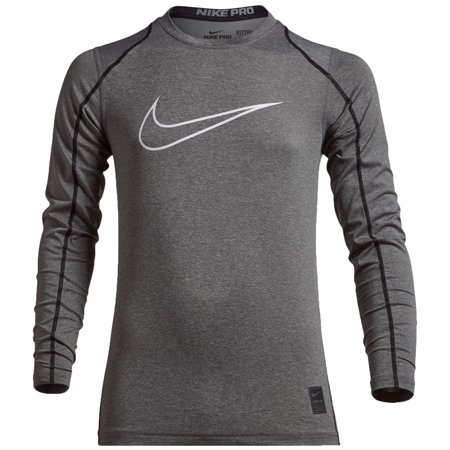Graphic long sleeve shirt; Long-sleeve fitted design hugs the body without compression; Dri-FIT fabric helps keep you dry and comfortable; Mesh back panels provide breathability; Flat seams move smoothly against your skin to reduce irritation; Ergonomic seams and underarm insets allow natural range of motion; Large Swoosh design trademark on chest for athletic style; Care Instructions: Machine wash; Fabric: Dri-FIT 92% polyester / 8% spandex; Style: 739405; Nike;