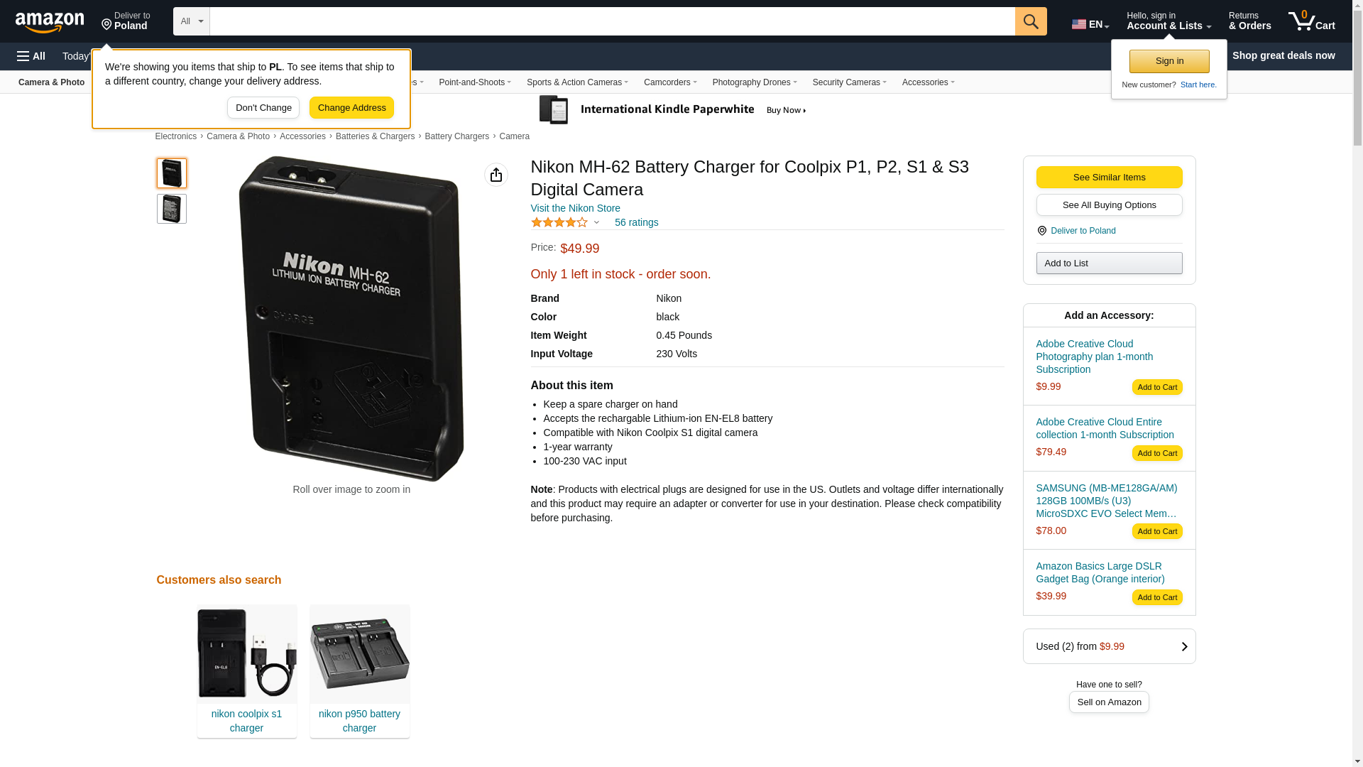 Nikon MH-62 Battery Charger for Coolpix P1, P2, S1 & S3 Digital Camera