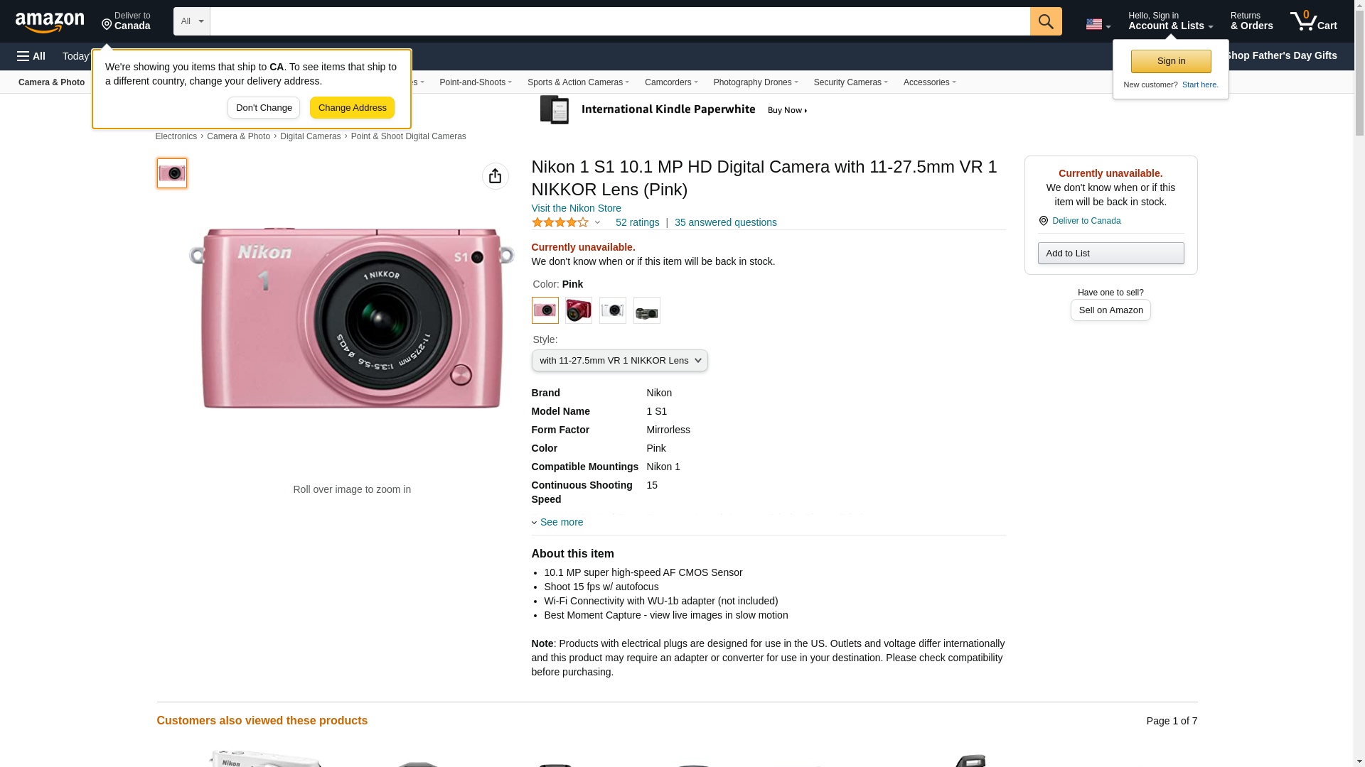 Nikon 1 S1 10.1 MP HD Digital Camera with 11-27.5mm VR 1 NIKKOR Lens (Pink)