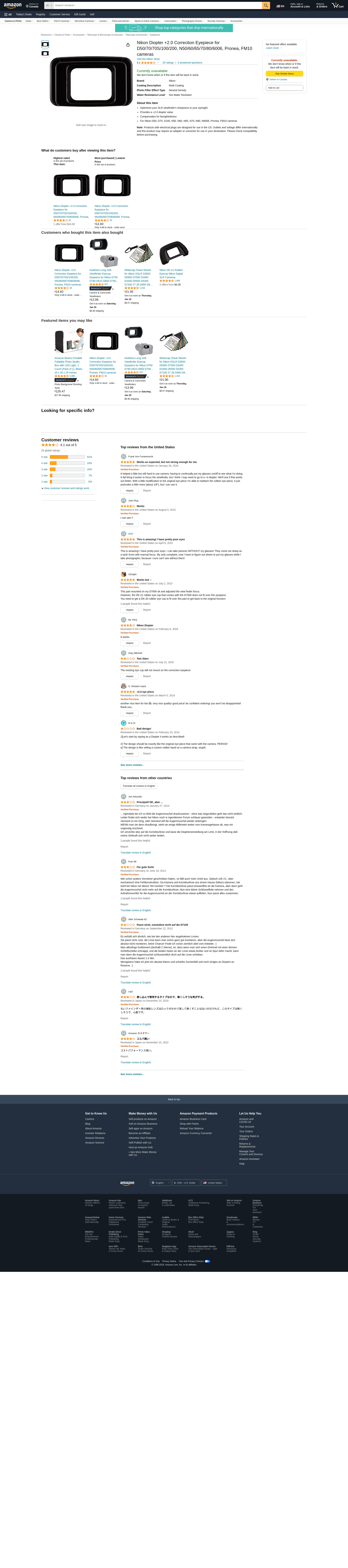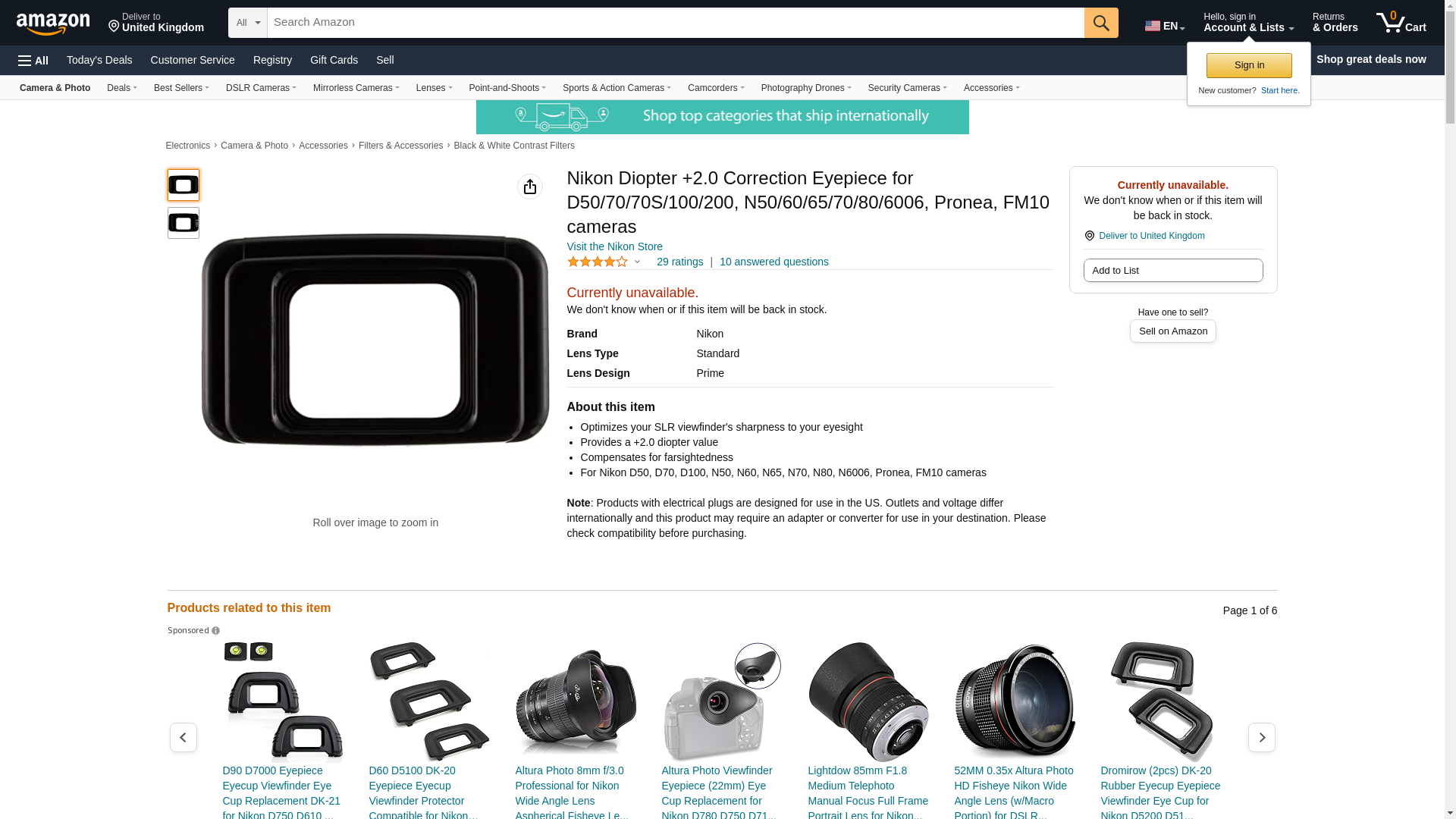 Nikon Diopter +2.0 Correction Eyepiece for D50/70/70S/100/200, N50/60/65/70/80/6006, Pronea, FM10 cameras