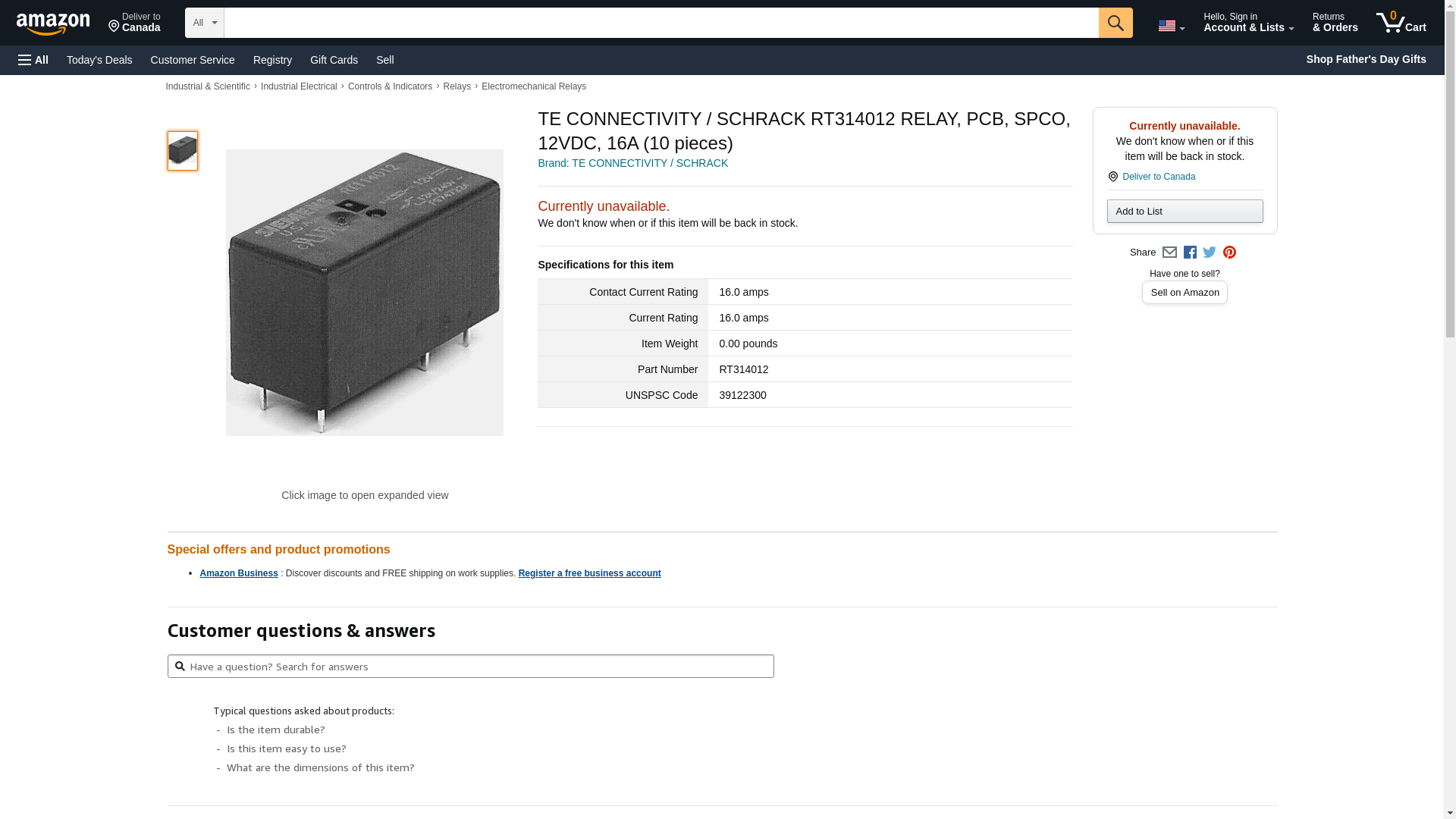 TE Connectivity - RT314012 - Shrack, SPDT PCB relay, 5mm pin, 16A 12Vdc - Allied Electronics & Automation, part of RS Group