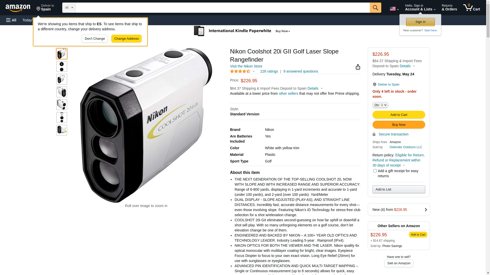Nikon Coolshot 20i GII Golf Laser Rangefinder COOLSHOT 20i GII golf laser rangefinder provides incredibly fast, accurate distance measurements for every shot—even those involving slope (elevation changes). Measurement range: 6-800 ydsID (Incline/Decline) Technology displays the "play as" distance, in addition to the actual distance, for an uphill or downhill shot.First Target Priority mode–useful for measuring the distance to a flagstick on a green with woods in the background.High-quality 6x monocular with multilayer coating for bright, clear imagesSingle or continuous measurement (up to 8 seconds) allows for quick, easy measurements to multiple targets.Displays in 1-yard increments± 1-yard accuracy (under 100 yards), ± 2-yard accuracy (over 100 yards)Long eye reliefEasy operation enables measurement of actual distance, while golf mode displays the slope adjusted distance (Horizontal distance ± Height) which is a guide for how far you should hit the ball and useful when golfing on an uphill/downhill course – ID (incline/decline) Technology.Compact, lightweight and ergonomic designRainproof (IPx4)Power Source: 1 CR2 Lithium BatterySize (Length x Width x Height): 3.6 x 1.5 x 2.9 inWeight( w/o Batteries): 4.6 oz