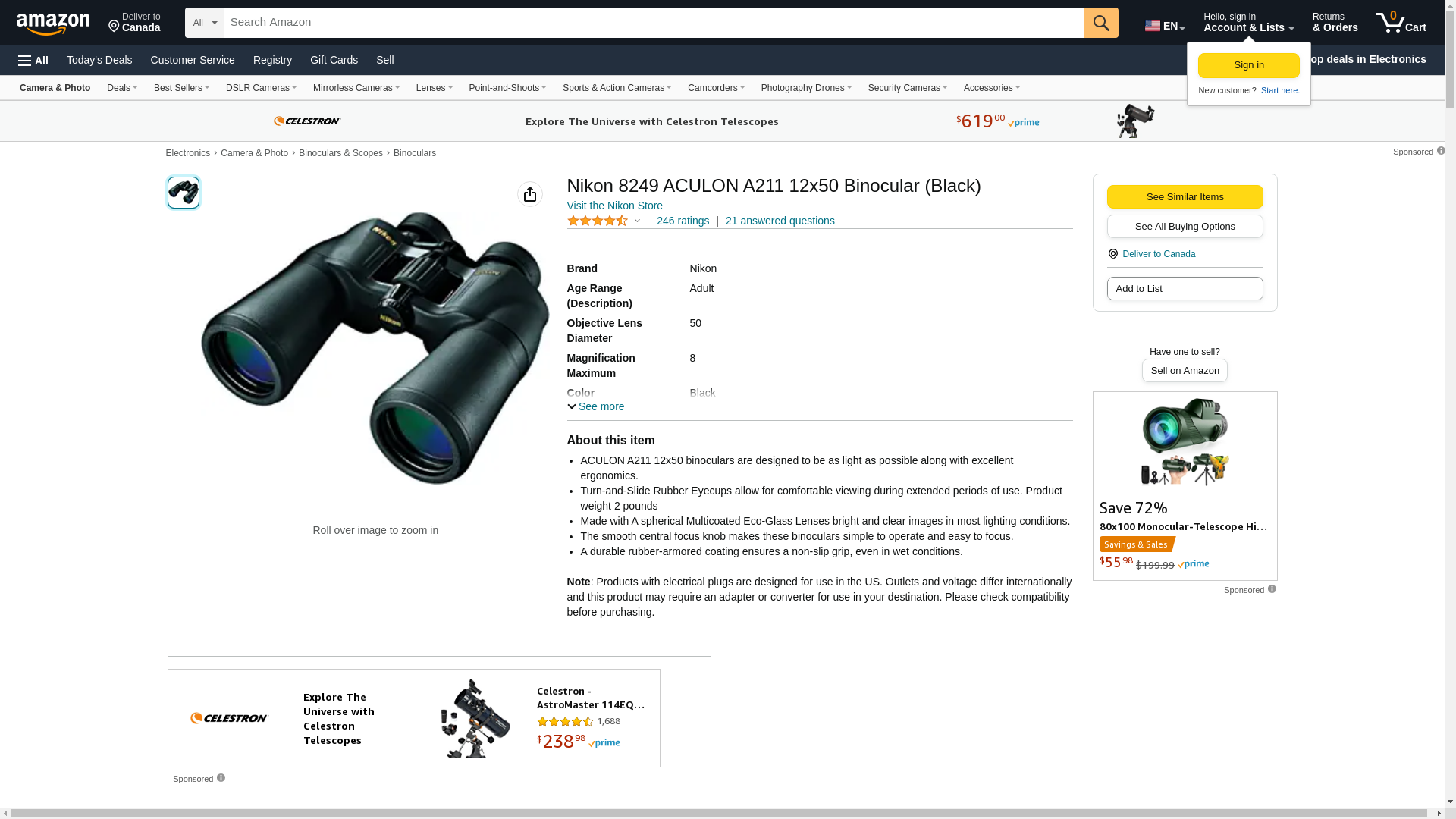 Nikon 8249 ACULON A211 12x50 Binocular (Black)