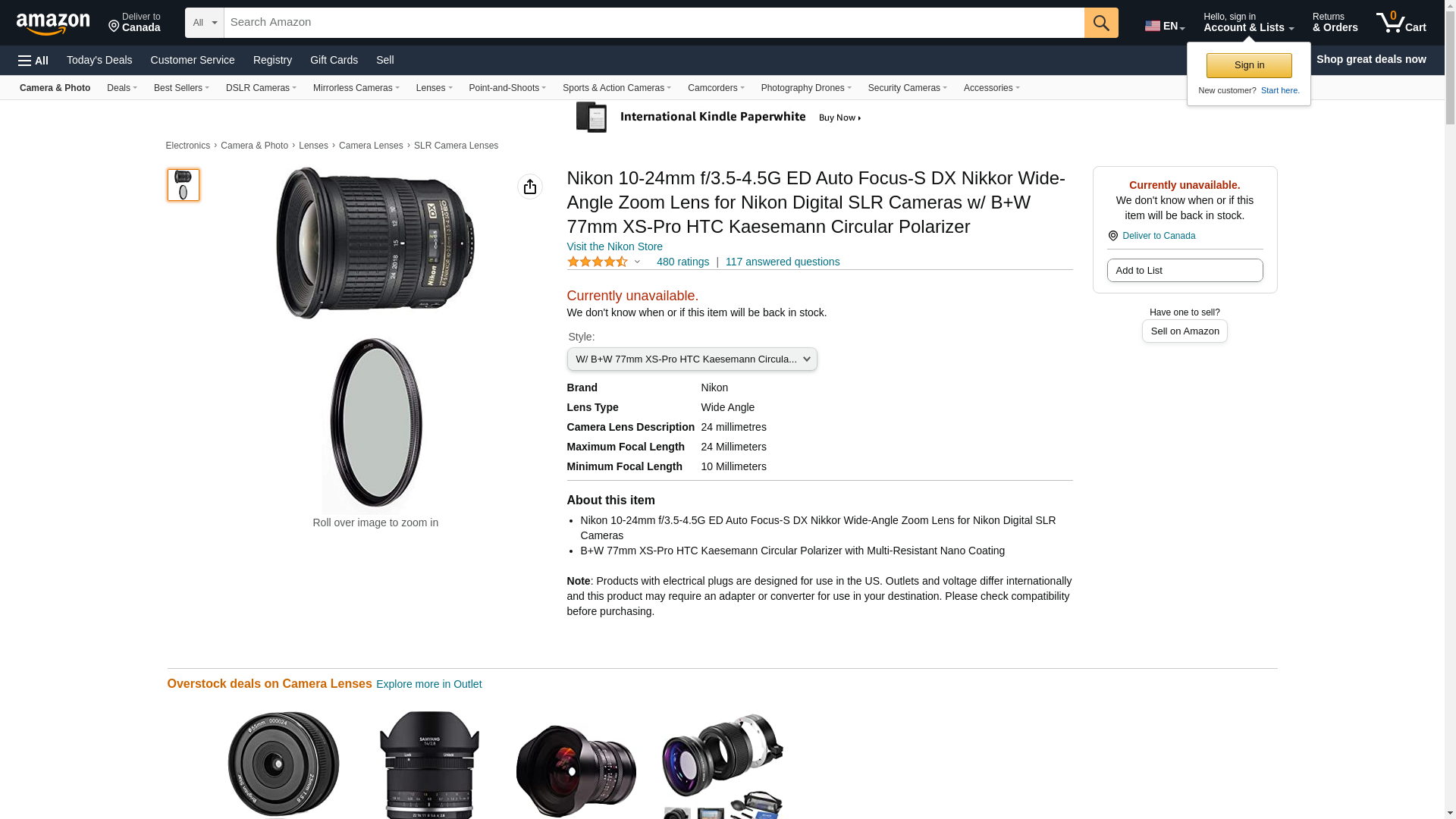 - Nikon 10-24mm f/3.5-4.5G ED Auto Focus-S DX Nikkor Wide-Angle Zoom Lens for Nikon Digital SLR Cameras