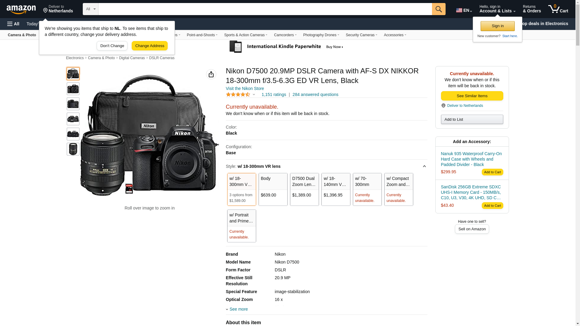 | Part number | D7500 w/ AF-S DX NIKKOR 18-300mm |