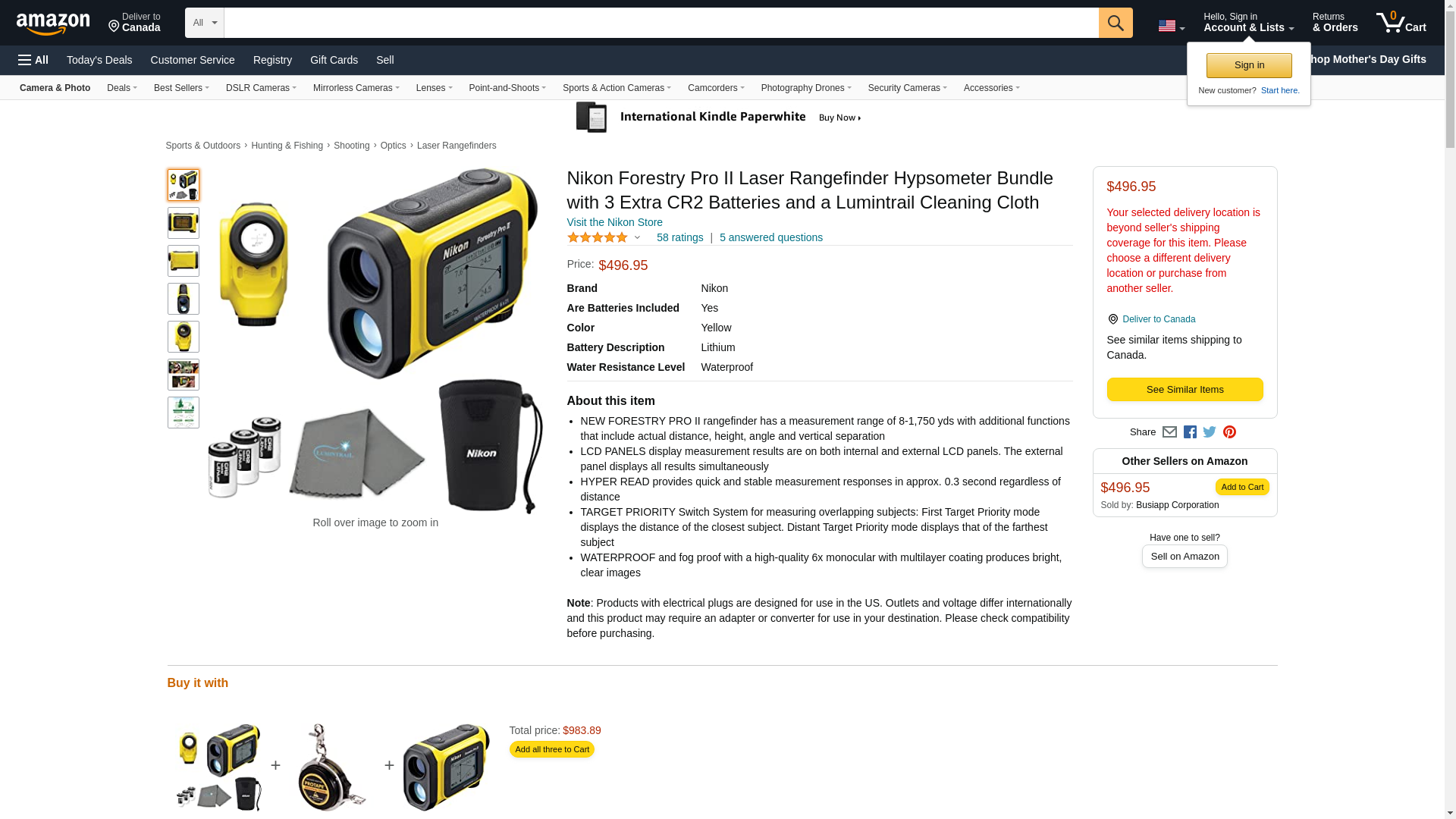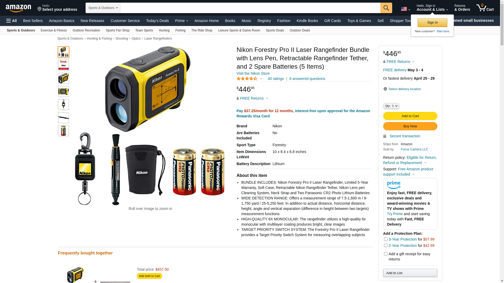 - Nikon Forestry Pro II Laser Rangefinder - Soft Case - Neck Strap - CR2 Lithium Battery - Nikon 5 Year Warranty