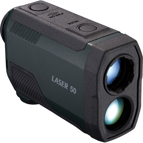 <p><strong>NIKON LASER 50 RANGEFINDER</strong></p> <p><strong>Specifications:</strong></p> <ul> <li>Measurement range: Distance: 10-2,000 yd. (9.1-1,820m) <p><em>Angle: ±89º</em></p> </li> </ul> <ul> <li> <p>Maximum Measurement Distance (Tree): 1,500 yd. (1,370m)</p> </li> <li>Maximum Measurement Distance (Deer):1,100 yd. (1,000m)</li> <li>Increment Reading <p>Actual Distance: every 0.1m/yd.</p> <p>Horizontal Distance: every 0.1m/yd.</p> <p>Height (upper): every 1m/yd. (100m/yd. and over)</p> <p>Angle: every 0.1°</p> </li> <li>Accuracy (Actual Distance): <p>±0.75m/yd. (shorter than 600m/yd.)<br /> ±1.00m/yd. (600m/yd. and over, shorter than 1,000m/yd.)<br /> ±1.50m/yd. (1,000m/yd. and over)</p> <p><em>Under Nikon’s measurement conditions</em></p> </li> <li>Magnification: 6x</li> <li>Effective Objective Diameter: 21mm</li> <li>Angular Field of View (Real): 7.5°</li> <li>Exit Pupil: 3.5mm</li> <li>Eye Relief: 18.0mm</li> <li>Diopter Adjustment: +/- 4°</li> <li>Power Source: 1 CR2 Lithium Battery (DC 3V)<br /> Automatic power shut-off (after approx. 8 sec. unoperated)</li> <li>Size (Length x Width x Height): 4.3 in. (110mm) x 1.6 in. (41mm) x 2.9 in. (74mm)</li> <li>Weight (Without Batteries): 6.3 oz (180g)</li> <li>Operating Temperature: -10 to +50°C (14 to 122°F)</li> <li>Operating Humidity: 80% or less (without dew condensation)</li> </ul> <hr /> <p><strong>Features:</strong></p> <ul> <li>Red internal display enables easier viewing in any situation. Automatic brightness adjustment function fine-tunes the display brightness according to the surrounding ambient light level.</li> <li>Quick and stable measurement response regardless of distance—HYPER READ displays the measurement result in approx. 0.3 seconds.</li> <li>Single or continuous measurement (up to 8 seconds). If single measurement fails, it automatically extends the measurement until succeeding for up to 4 seconds. Keeping the button depressed enables continuous measurement for up to approx. 8 seconds.</li> <li>Four selectable measurement display modes <ul> <li>Horizontal distance and angle mode</li> <li>Actual distance and angle mode</li> <li>Horizontal distance and height mode</li> <li>Actual distance and height mode</li> </ul> </li> <li>Target Priority Switch System for measuring overlapping subjects: First Target Priority mode displays the distance of the closest subject, while Distant Target Priority mode displays that of the farthest subject—useful in wooded areas.</li> <li>Distance measurement display step: 0.1m/yd.</li> <li>High-quality 6x monocular with multilayer coating for bright, clear images</li> <li>Large ocular for easy viewing (18mm)</li> <li>Wide field of view (7.5 degrees)</li> <li>Long eye relief design affords eyeglass wearers easy viewing</li> <li>Diopter adjustment function</li> <li>Compact body design for comfortable holding</li> <li>Waterproof (up to 1m/3.3 ft. for 10 minutes) and fog-proof, but not designed for underwater usage; the batter chamber is rainproof</li> <li>Wide temperature tolerance: -10°C to +50°C/14°F to 122°F</li> </ul> <hr /> <p><strong>Laser Classification: IEC60825-1: Class 1M/Laser Product</strong><br /> <strong>FDA/21 CFR Part 1040.10: Class I Laser Product</strong></p>