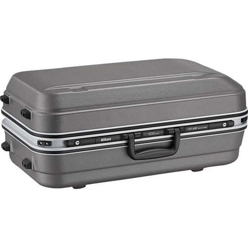 Protect, store and transport your AF-S Nikkor 500mm f/4E FL ED VR lens with the Nikon CT-505 Case. The sturdy case features interior padding to insulate the lens from moderate impact while keeping it clean and dust-free. The trunk case is made from aluminum alloy and molded polycarbonate and features a top handle, side handle and shoulder strap for convenient transport. The Nikon CT-505 has lockable latches and can be positioned upright or flat on the four feet located both on its side and bottom.