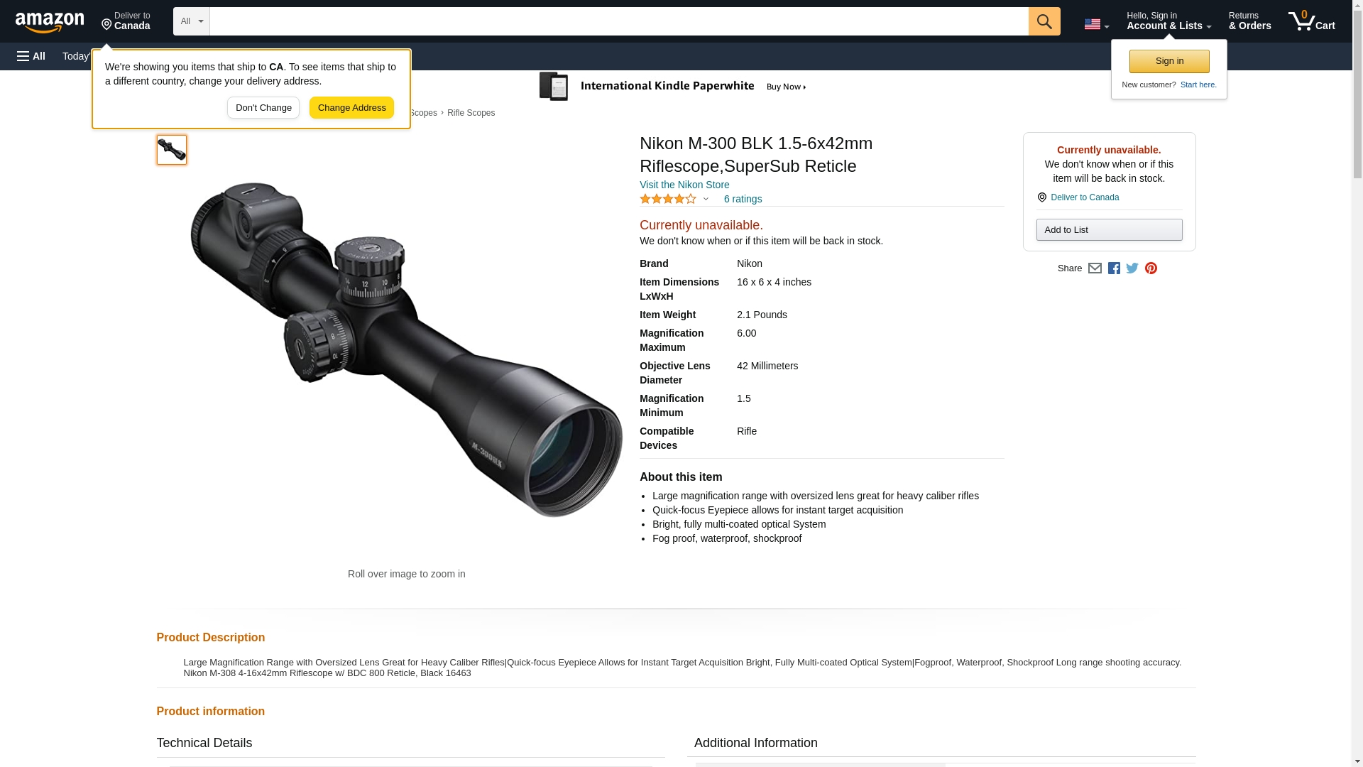 Nikon M-300 1.5-6x42 Riflescope, Bdc Supersub Reticle, Matte (6796)