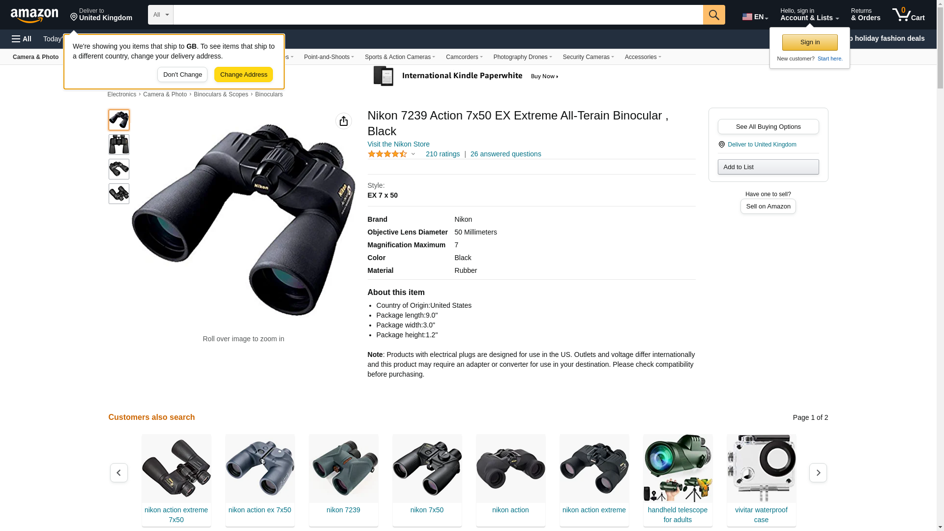 Nikon 7239 Action 7x50 EX Extreme All-Terain Binocular , Black