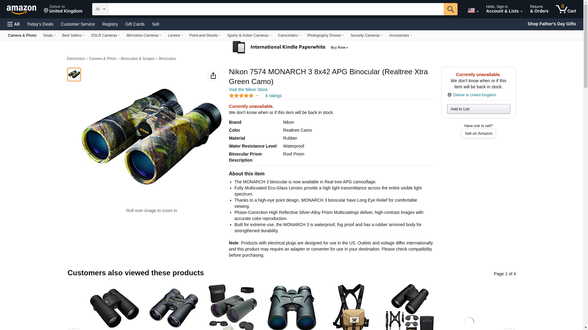 | Feature | The MONARCH 3 binocular is now available in Real tree APG camouflage. |