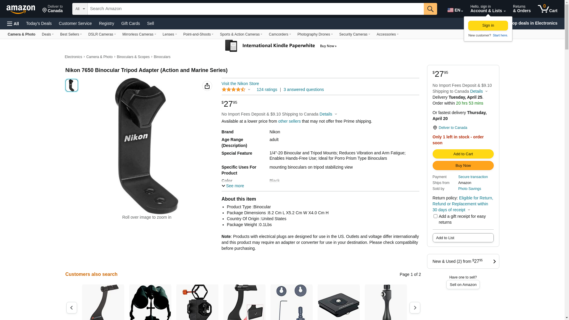 | Feature | Adapts select Nikon binoculars to any standard tripod |