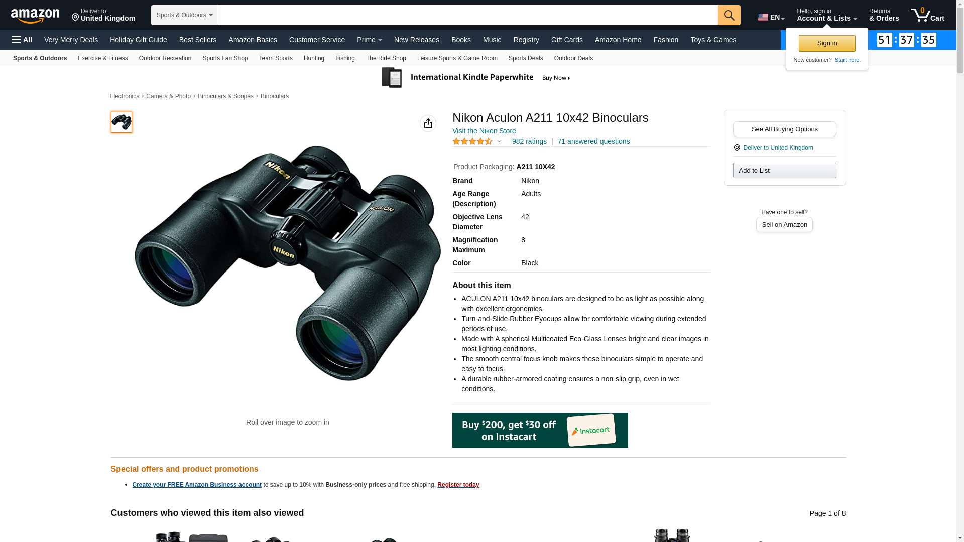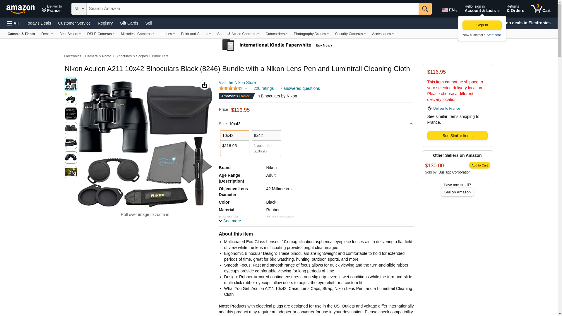 ![]() opticsplanet.com | NI-BI-10X42ACU-8246 | 1 | 1 | 1 @ $119.95 | |