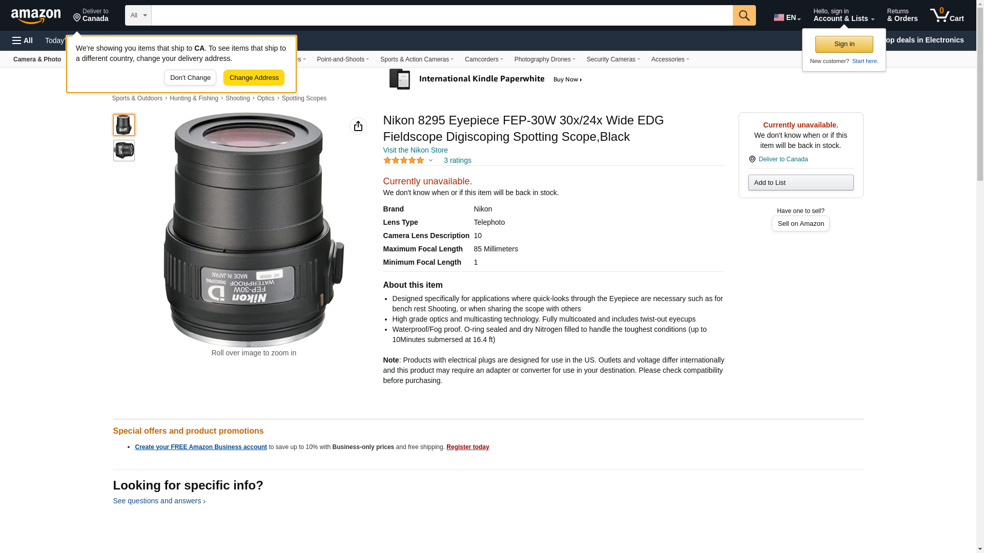 Nikon 8295 Eyepiece FEP-30W 30x/24x Wide EDG Fieldscope Digiscoping Spotting Scope