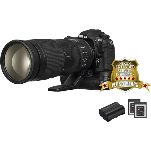 - AF-S NIKKOR 200-500mm f/5.6E ED VR lens which offers a 300-750mm field of view on the D500's DX image sensor