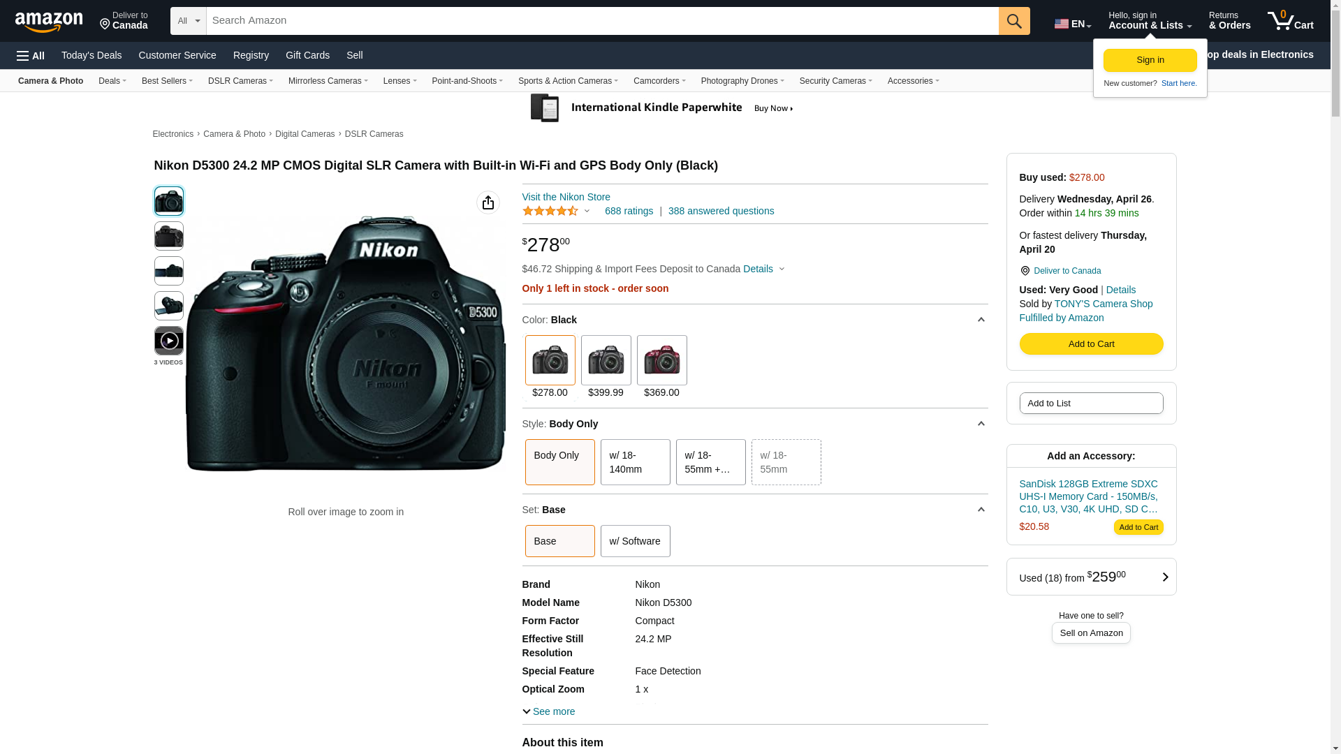Nikon D5300 24.2 MP CMOS Digital SLR Camera with Built-in Wi-Fi and GPS Body Only (Black)