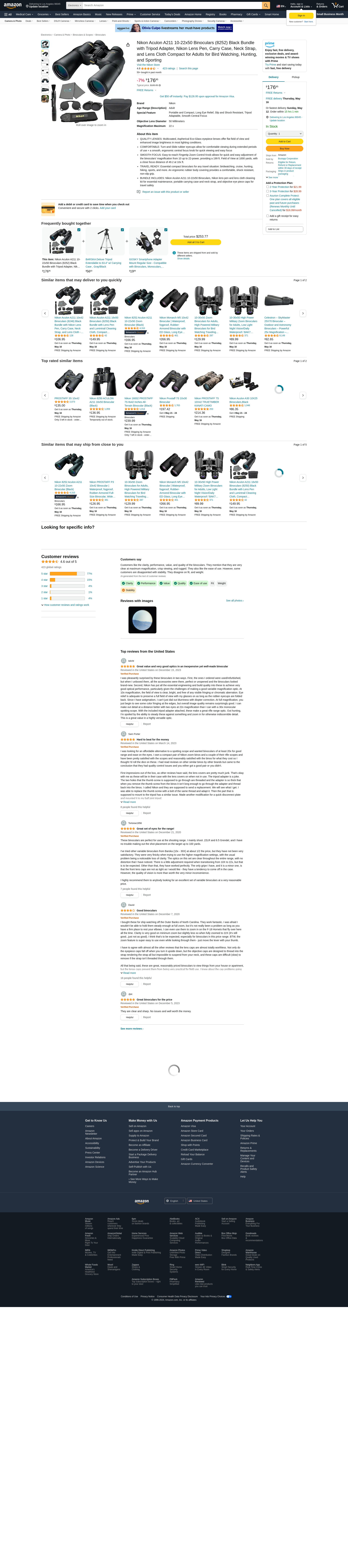 Nikon Aculon A211 10-22x50 Binoculars (8252) Black Bundle with Tripod Adapter, Nikon Lens Pen, Carry Case, Neck Strap, and Lens Cloth Compact for Adults for Bird Watching, Hunting, and Sporting