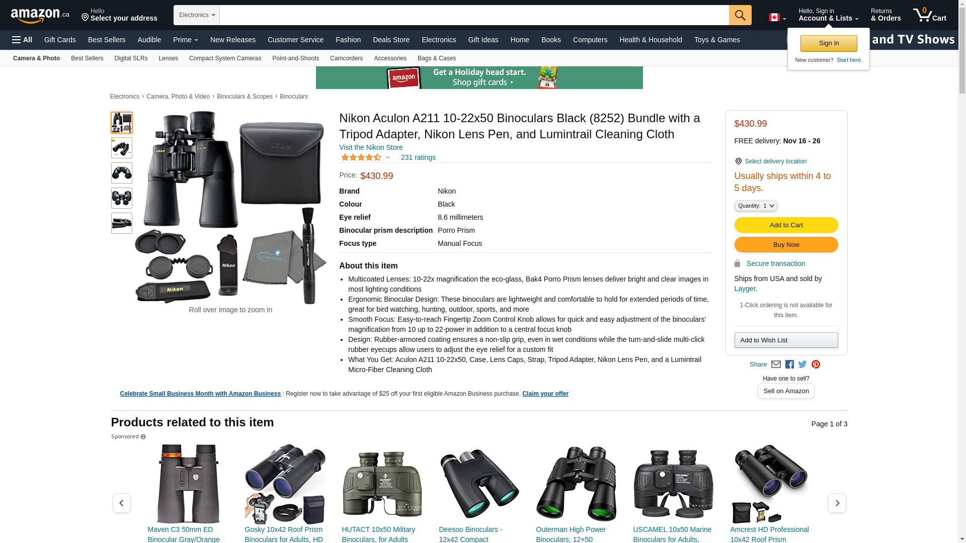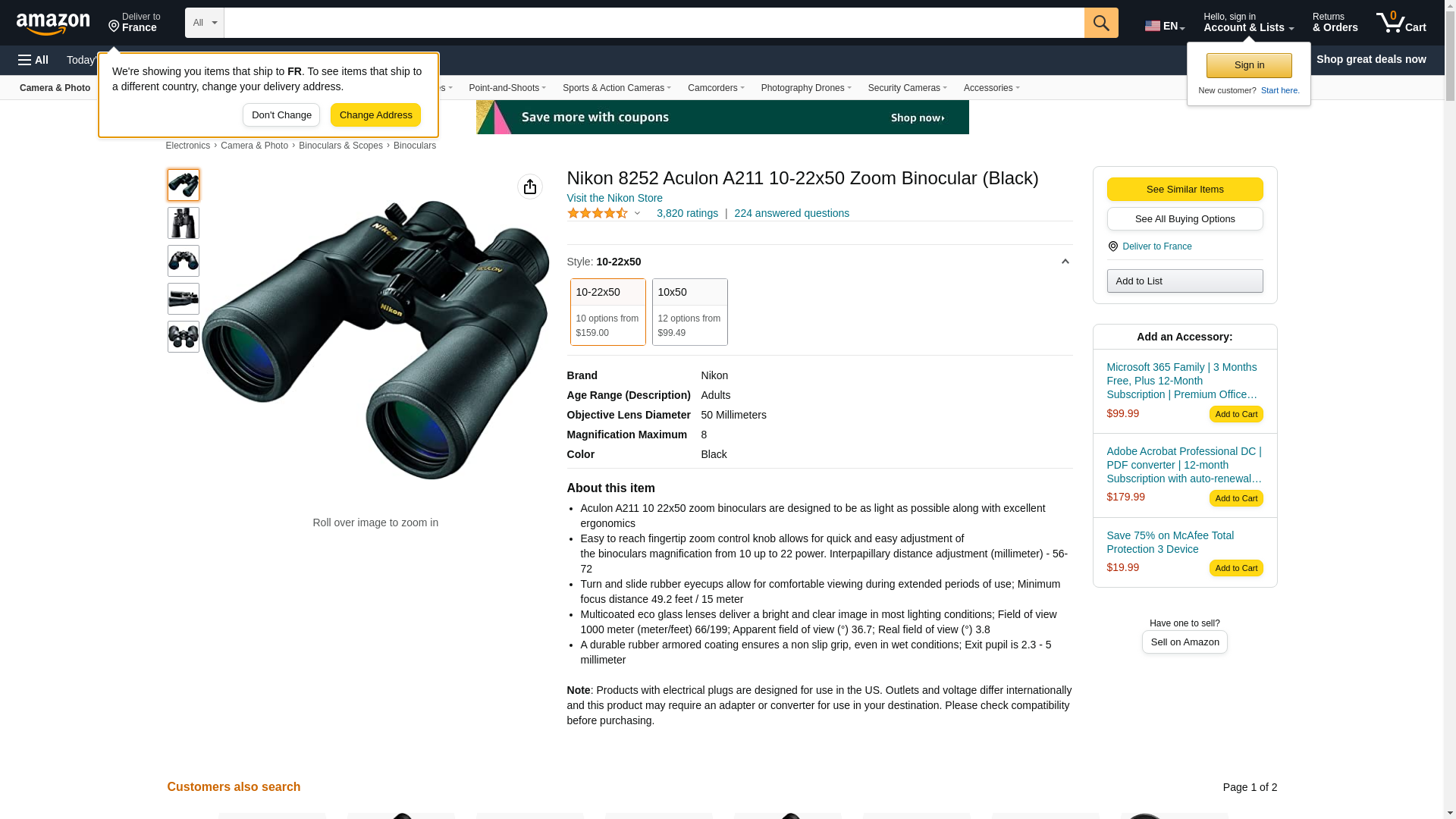 Nikon 8252 Aculon A211 10-22x50 Zoom Binocular (Black)